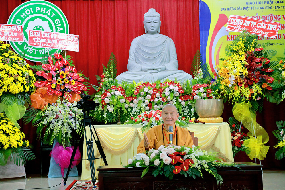 Hòa thượng khuyến tấn các Phật tử noi theo hạnh nguyện của Đức Phật, tinh tiến tu tập và hành trì nhằm chuyển hóa tham - sân - si, khổ đau phiền não thành sự an lạc, giải thoát và hạnh phúc ngay trong cuộc sống hiện tại.