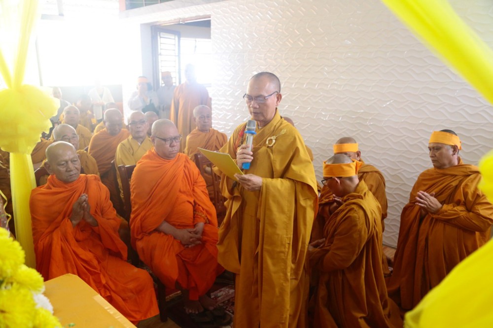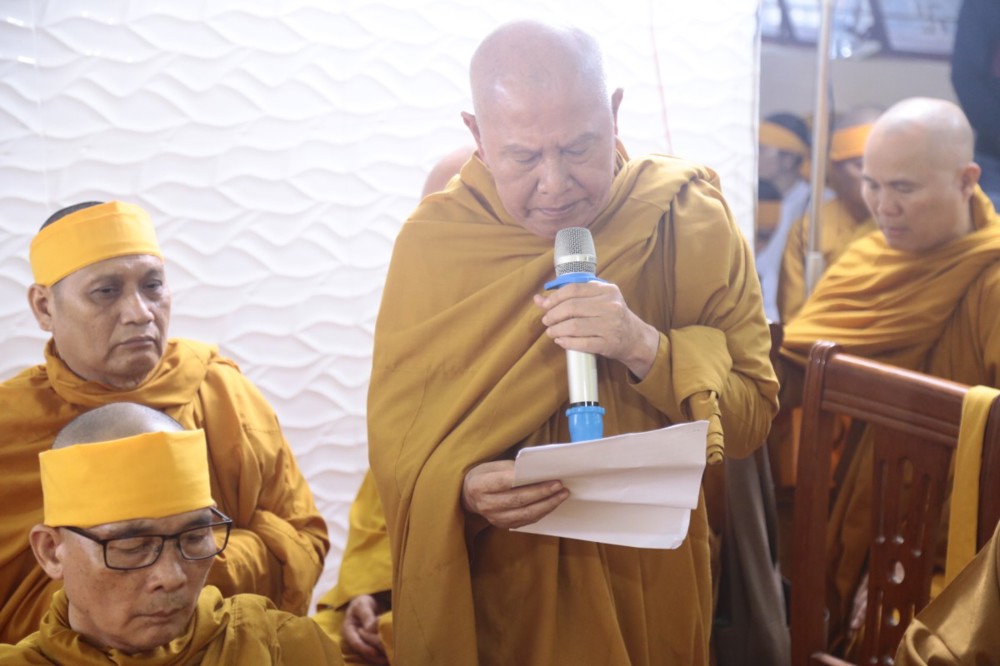 Đại diện môn đồ pháp quyến, cung đối đối trước Giác linh đường dâng lời hoài niệm Tôn sư cố Trưởng lão Hòa thượng.