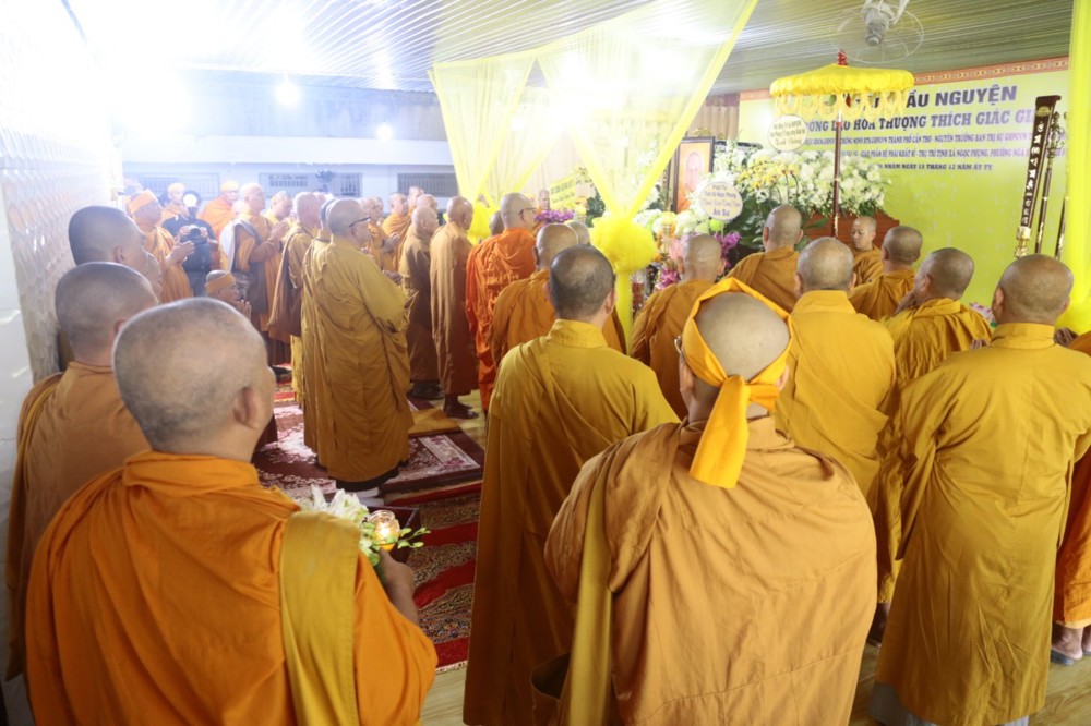 Sau phần cung tuyên tiểu sử, HT. Đào Như – Phó Chủ tịch HĐTS, Trưởng BTS GHPGVN TP. Cần Thơ, Trưởng Ban Tổ chức tang lễ đã thay mặt Trung ương Giáo hội dâng lời tưởng niệm, bậc trưởng lão gương mẫu, suốt đời tận tụy với Đạo pháp và dân tộc, kính nguyện Giác linh Trưởng lão Hòa thượng chứng tri đạo cho tình pháp lữ sâu nặng. Trong không khí trang nghiêm, lời tưởng niệm đã bày tỏ niềm kính tiếc sâu sắc, tri ân vô hạn đối với công hạnh, đạo phong và những đóng góp to lớn của Ngài.
