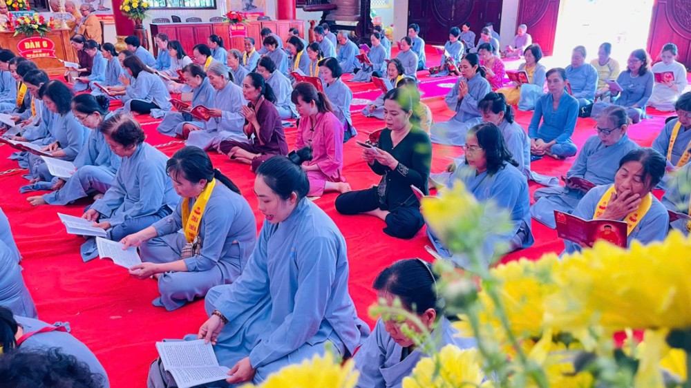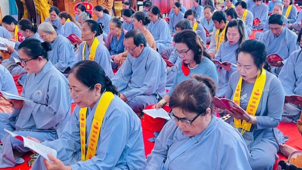 Thời kinh Dược sư được chư tôn đức Tăng Ni và Phật tử đồng hiệp tụng. Âm vang chánh pháp hoà quyện với hạnh nguyện rộng lớn của chư Phật Dược sư làm đạo tràng tràn ngập niềm tin chân chánh, tin vào một tương lai tốt đẹp trong năm Bính Ngọ 2026.