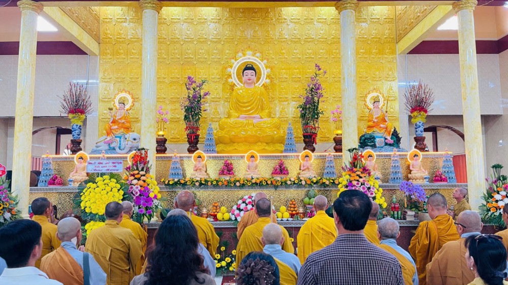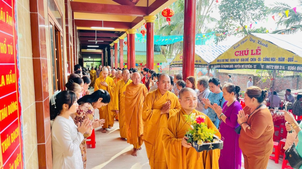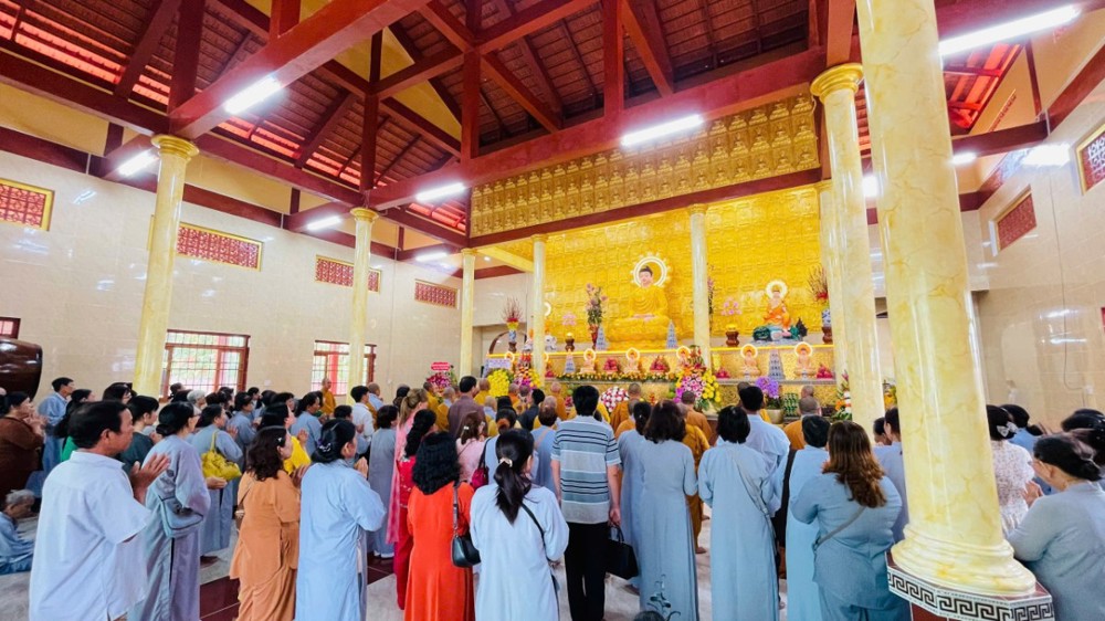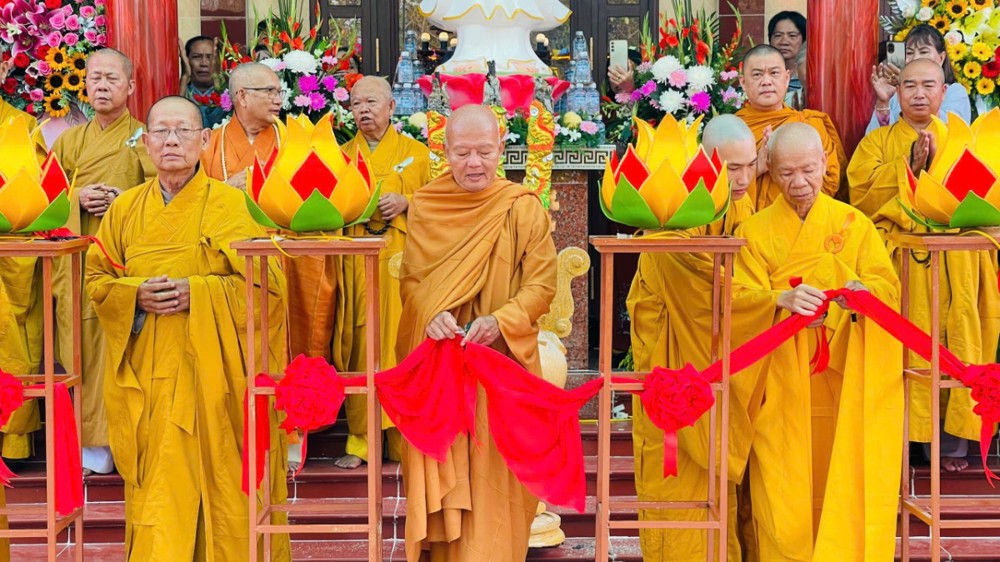 Thành kính khánh tạ Tam bảo, chư tôn đức cắt băng khánh thành, vào điện niệm hương lễ Phật, cử hành lễ Sái tịnh, An vị tôn tượng đức Bổn sư Thích ca Mâu ni Phật, chư vị Bồ tát được tôn trí tại Chánh điện.