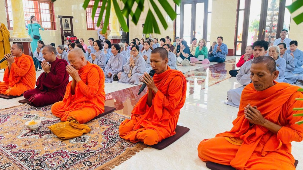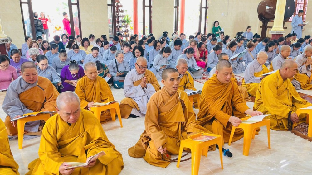 Nhân dịp đầu năm mới, xuân Bính Ngọ 2026, chư tôn đức Tăng Ni và Phật tử đồng tụng kinh Dược sư cầu "Phật nhựt Tăng huy, Pháp luân thường chuyển, phong điều vũ thuận, quốc thái dân an".