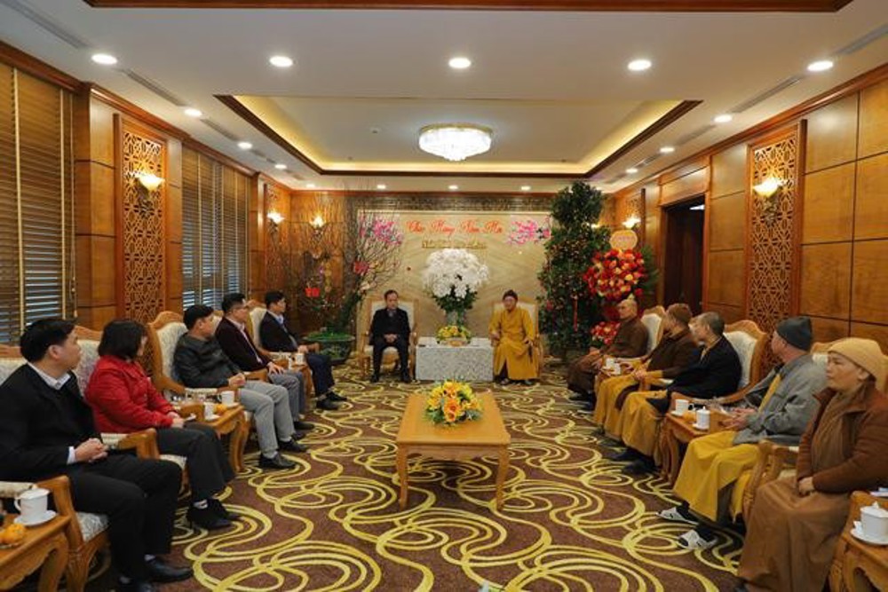 Ngay sau hội nghị, Đoàn BTS GHPGVN tỉnh do Hòa thượng Thích Gia Quang làm Trưởng đoàn đã đến thăm và chúc Tết tại Tỉnh ủy, UBND tỉnh Cao Bằng.