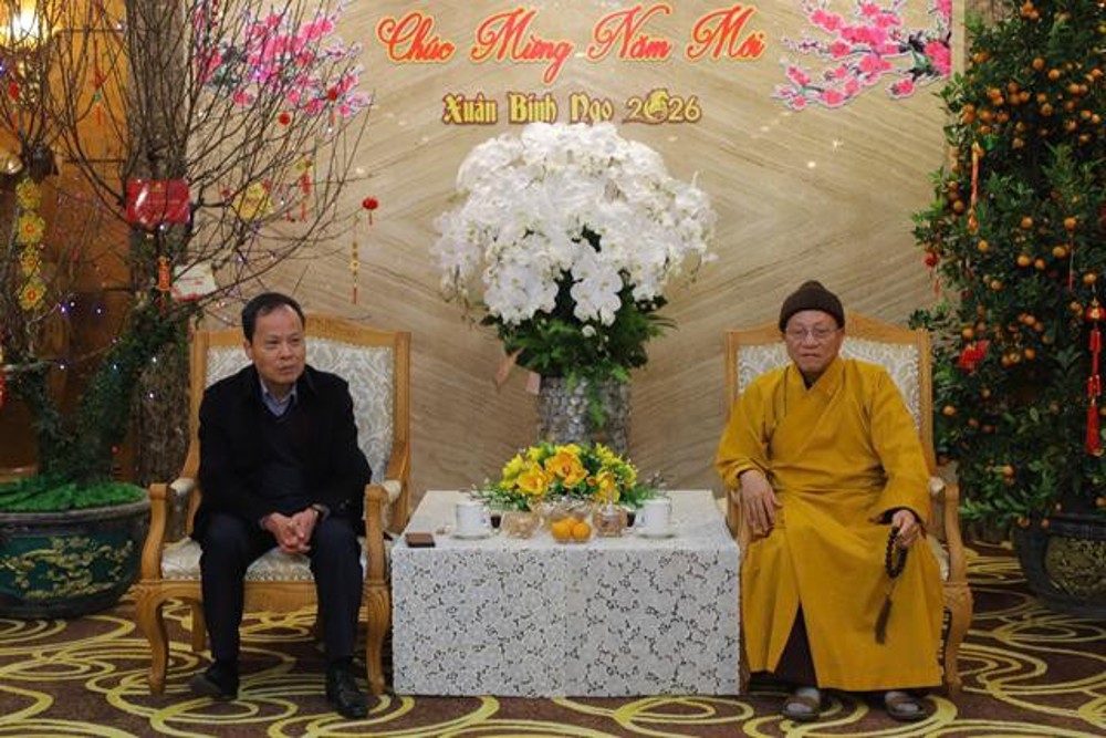 Tiếp đoàn có ông Nông Thanh Tùng- Trưởng Ban Tuyên giáo và Dân vận tỉnh ủy và ông Hoàng Văn Thạch – Phó Chủ tịch UBND tỉnh. Lãnh đạo tỉnh đánh giá rất cao vai trò của Giáo hội, đặc biệt là tinh thần dấn thân của Tăng Ni, Phật tử trong công tác thiện nguyện, giúp đỡ nhân dân vượt qua nghịch cảnh thiên tai. Các cấp lãnh đạo khẳng định sẽ luôn đồng hành, tháo gỡ khó khăn để Phật giáo Cao Bằng hoàn thành tốt phương hướng năm 2026.