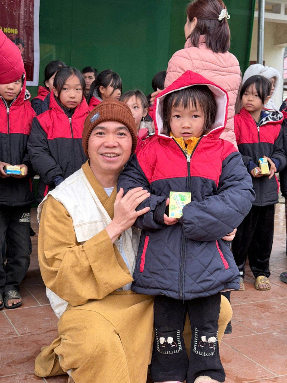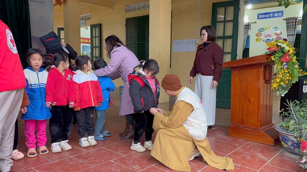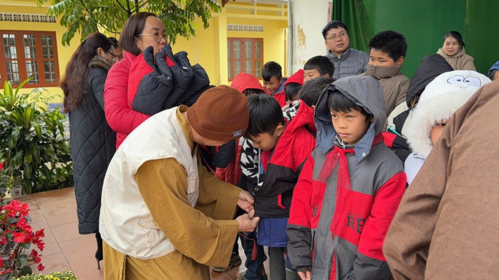 Tại buổi trao quà, Đại đức Thích Giác Đạo đã ân cần thăm hỏi tình hình đời sống của bà con địa phương, đồng thời động viên các em học sinh nỗ lực vươn lên trong học tập, vượt qua khó khăn của điều kiện vùng cao. Những chiếc áo ấm được trao tận tay đã mang lại niềm vui rõ nét cho các em nhỏ trong cái lạnh buốt của mùa đông Tây Bắc.