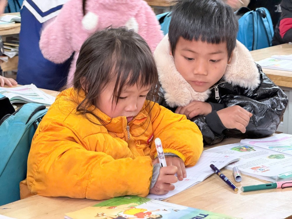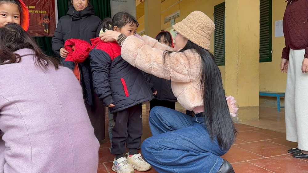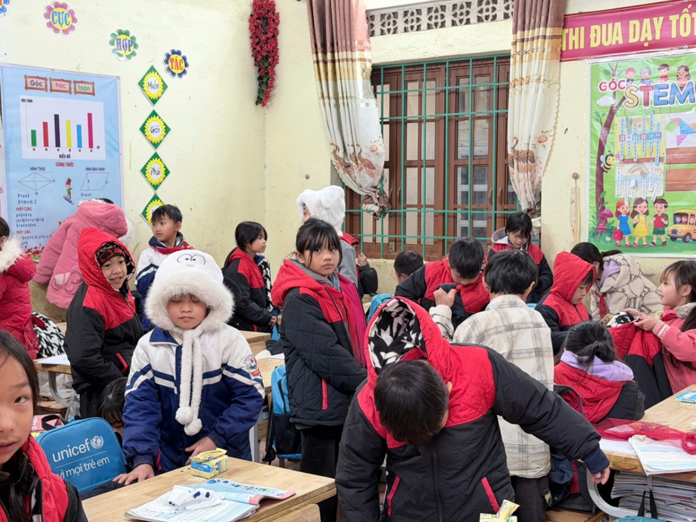Nhiều em hồn nhiên chia sẻ niềm vui khi năm nay có áo khoác mới để mặc đến trường, khiến các thành viên trong đoàn vô cùng xúc động, cảm nhận sâu sắc ý nghĩa nhân văn của chuyến thiện nguyện và giá trị của sự sẻ chia yêu thương.