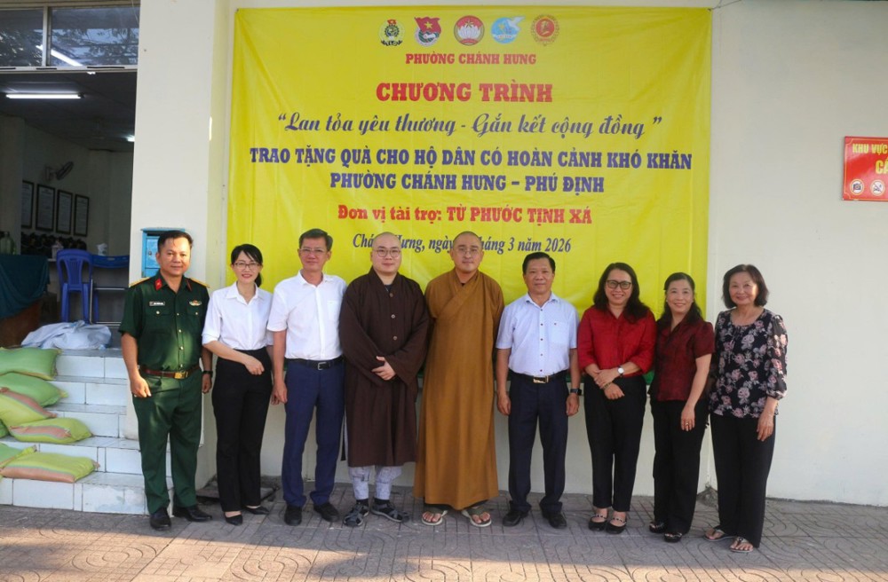 Tham dự chương trình có Hòa thượng Thích Huệ Công – Ủy viên Hội đồng Trị sự, Phó Trưởng Ban Trị sự GHPGVN TP.HCM, Trưởng Đại diện Phật giáo người Hoa TP; Đại đức Thích Thông Chấn (đại diện Tịnh xá Từ Phước, phường Chánh Hưng); Đại đức Thích Tâm Đức (đại diện chùa Hưng Tích, phường Chánh Hưng), cùng lãnh đạo chính quyền hai phường và đông đảo bà con địa phương.