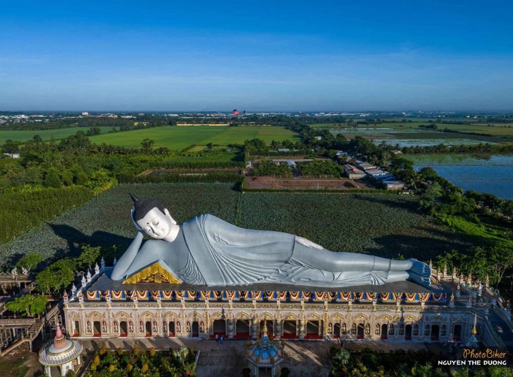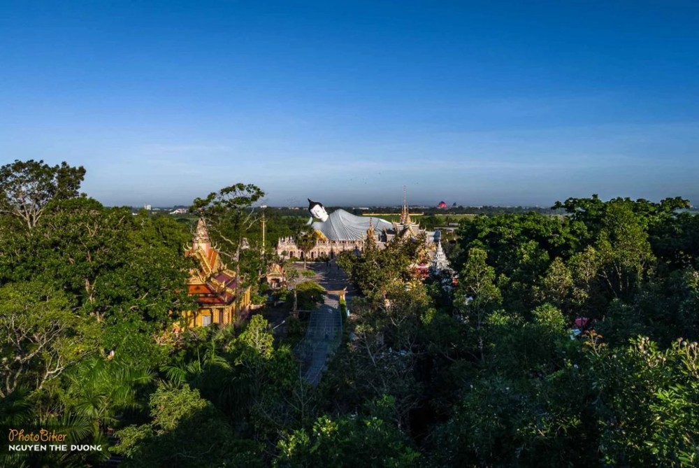 Tượng Phật Thích Ca nhập Niết bàn tại chùa Bôtum Vong Sa Som Rong (thường gọi là chùa Som Rong) là điểm nhấn nổi bật giữa khung cảnh thanh bình của thành phố Sóc Trăng khi nhìn từ trên cao.