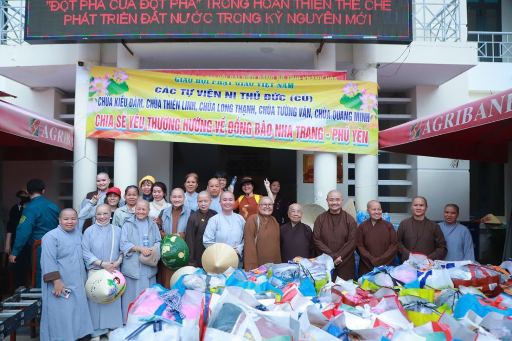 PSO - Sáng ngày 6/12/2025, tiếp nối hành trình sẻ chia hướng về miền Trung sau bão lũ, đoàn từ thiện Phân ban Ni giới TP. Thủ Đức (cũ) do Ni trưởng Thích Nữ Giác Trung – Phó Trưởng Phân ban Ni giới TP.HCM, Trụ trì Ni viện Vạn Vạnh, làm trưởng đoàn; Ni trưởng Thích Nữ Như Trí và Ni sư Thích Nữ Chúc Tường – Uỷ viên Thường trực PBNG TP.HCM, đồng phó đoàn, cùng chư Ni các tự viện TP.HCM – Đồng Nai, quý Phật tử và mạnh thường quân đã đến tỉnh Khánh Hòa để trao quà hỗ trợ bà con bị ảnh hưởng bởi bão lũ.