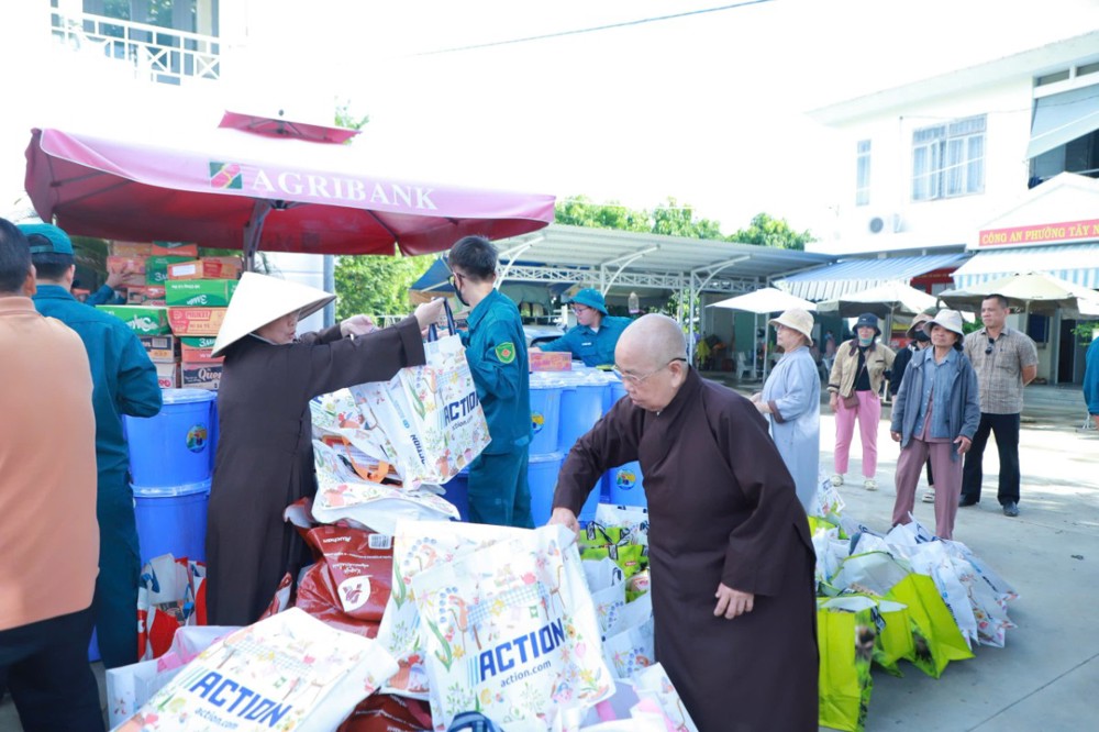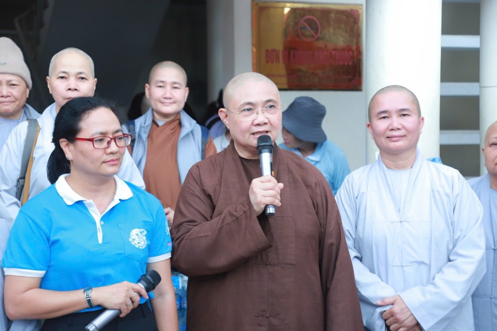 Trong buổi trao quà, sau lời phát biểu chào đón và cảm ơn đoàn của đại diện Hội Phụ nữ phường, Ni sư Thích Nữ Chúc Tường thay mặt đoàn chia sẻ: “Hai ngày liên tiếp đến với bà con vùng bão lũ tại hai tỉnh miền Trung, chúng tôi cảm nhận rõ những mất mát mà thiên tai để lại. Dẫu phần quà không lớn, nhưng là tấm lòng của chư Ni các tự viện và quý Phật tử gửi gắm, mong bà con sớm vượt qua giai đoạn khó khăn, ổn định lại cuộc sống. Đây cũng là cách chúng tôi tiếp nối tinh thần từ bi mà Đức Phật đã dạy – luôn đồng hành cùng những hoàn cảnh cần được sẻ chia.”