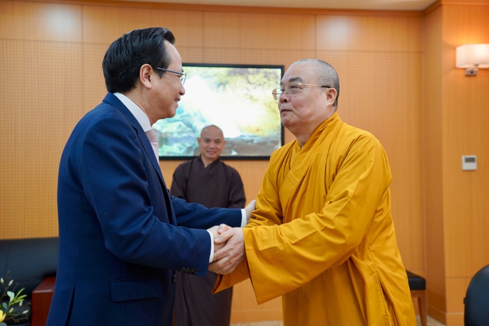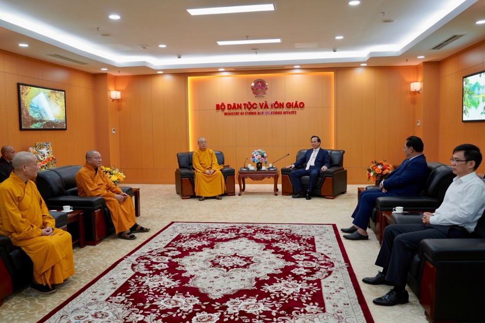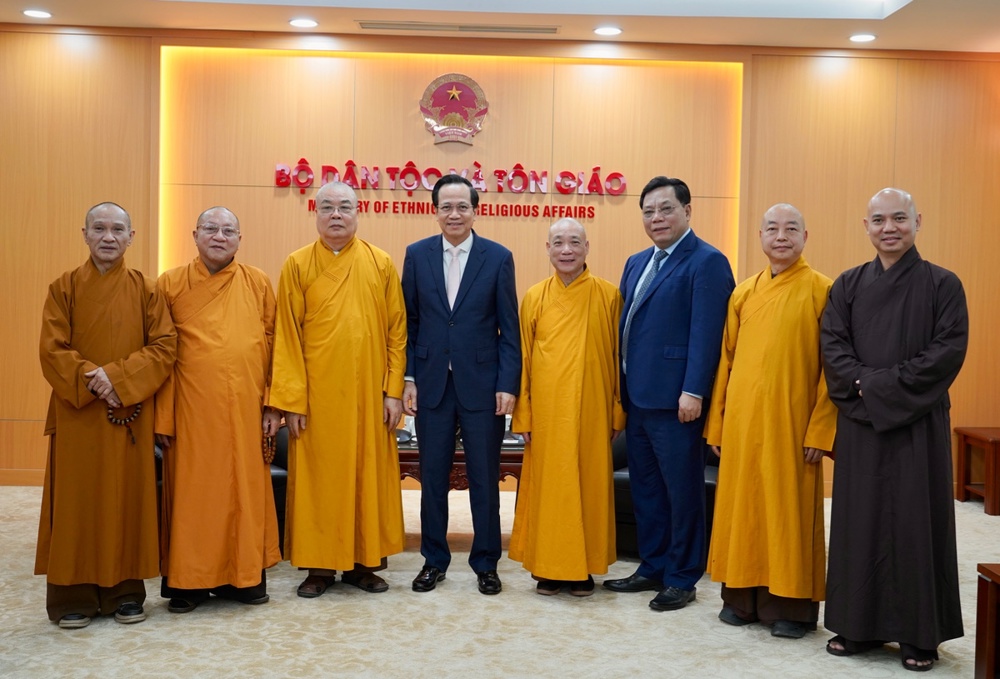 Phát biểu tại buổi gặp mặt, lãnh đạo Bộ bày tỏ niềm vui mừng và đánh giá cao sự lãnh đạo của Giáo hội Phật giáo Việt Nam (GHPGVN) trong việc phát huy truyền thống đoàn kết, thống nhất. GHPGVN đã luôn bám sát lý tưởng "Đạo pháp - Dân tộc", không chỉ chăm lo đời sống tâm linh mà còn thực hiện nhiều hoạt động thiết thực nhằm cải thiện đời sống nhân dân.