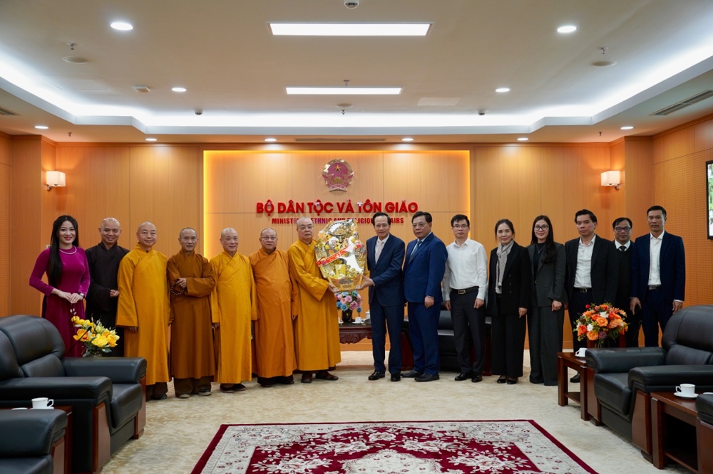 Về công tác trọng tâm thời gian tới, Bộ khẳng định sẽ hết sức quan tâm, ủng hộ và phối hợp chặt chẽ trong việc hướng dẫn Giáo hội chuẩn bị cho Đại hội Đại biểu Phật giáo toàn quốc sau khi sáp nhập địa giới hành chính. Thay mặt lãnh đạo Đảng và Nhà nước, Bộ trưởng Bộ trưởng Bộ Dân tộc và Tôn giáo trân trọng cảm ơn sự phối hợp của Hội đồng Trị sự GHPGVN trong các hoạt động phụng sự xã hội suốt thời gian qua, Bộ trưởng gửi lời chúc mừng năm mới đến chư tôn đức Giáo phẩm GHPGVN, cùng toàn thể Tăng Ni, Phật tử cả nước đón năm mới Xuân Bính Ngọ 2026 mạnh khỏe và an lạc