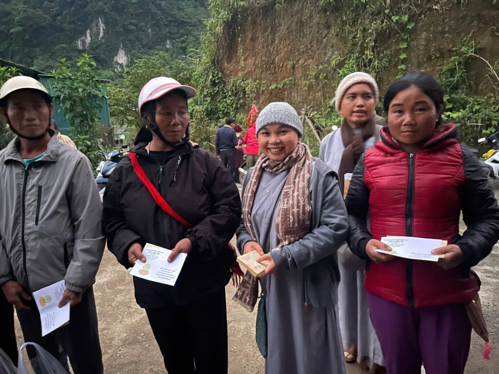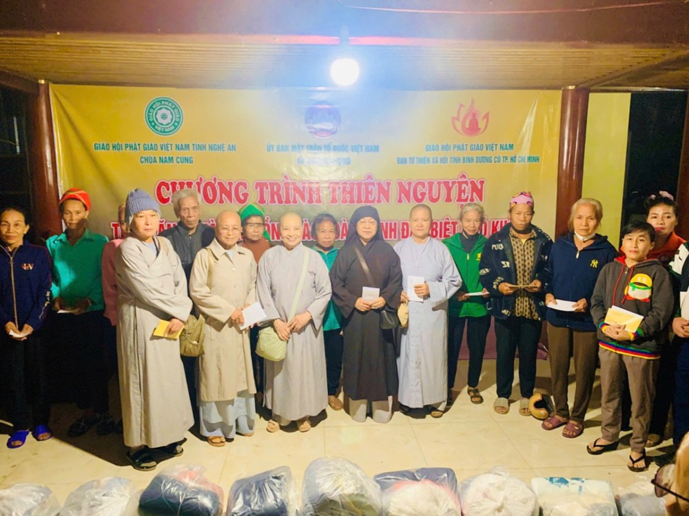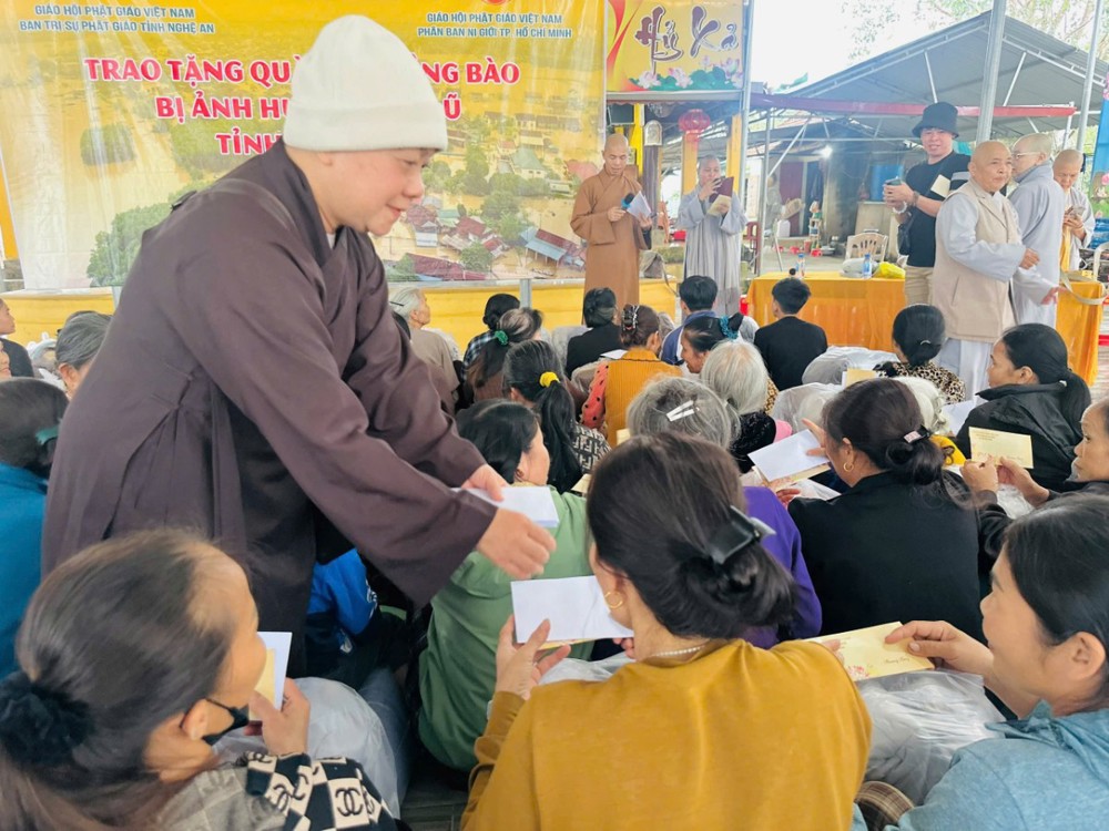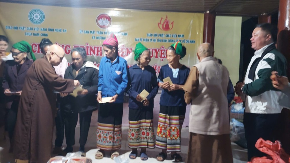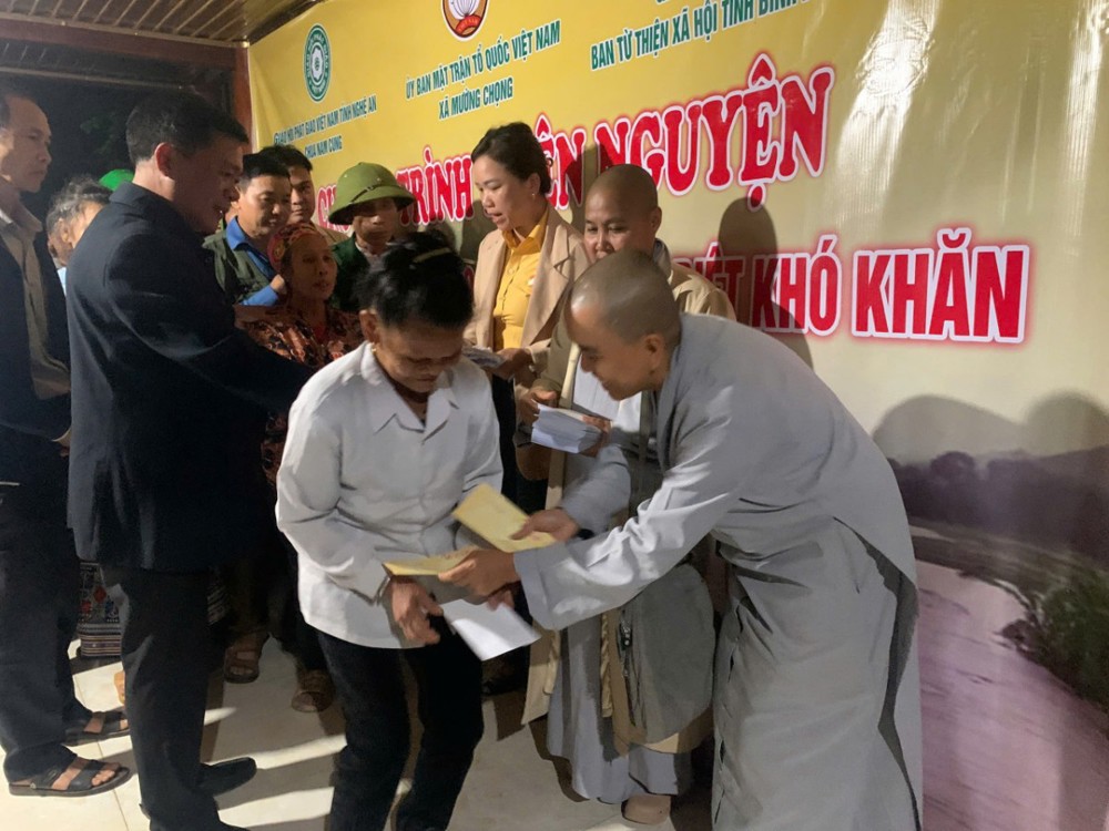 Chiều cùng ngày, chư Tôn đức Ni đã tiếp tục đến Mậu Đức, Quỳ Hợp, Nghệ An trao tặng 200 phần, mỗi phần là 1.300.000 đồng.