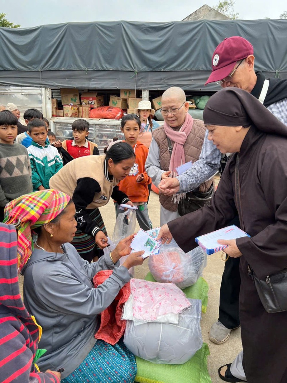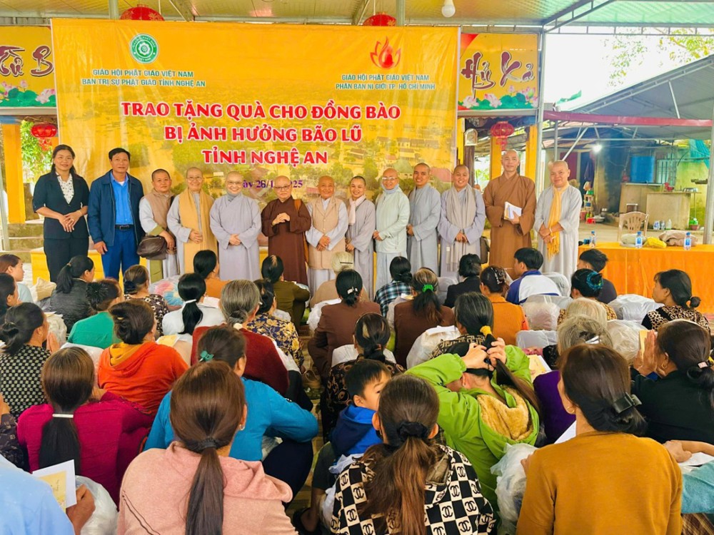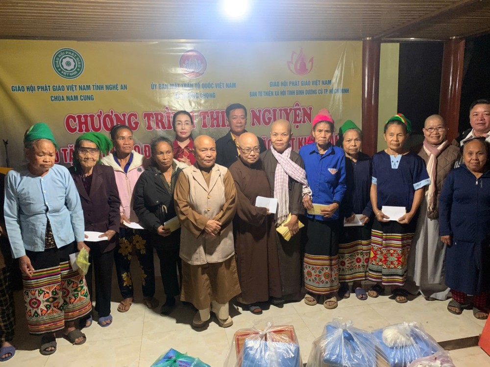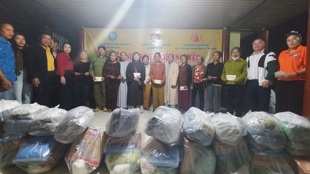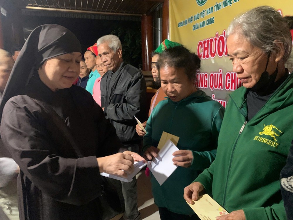 Chiều cùng ngày, chư Tôn đức Ni đã tiếp tục đến Mậu Đức, Quỳ Hợp, Nghệ An trao tặng 200 phần, mỗi phần là 1.300.000 đồng.