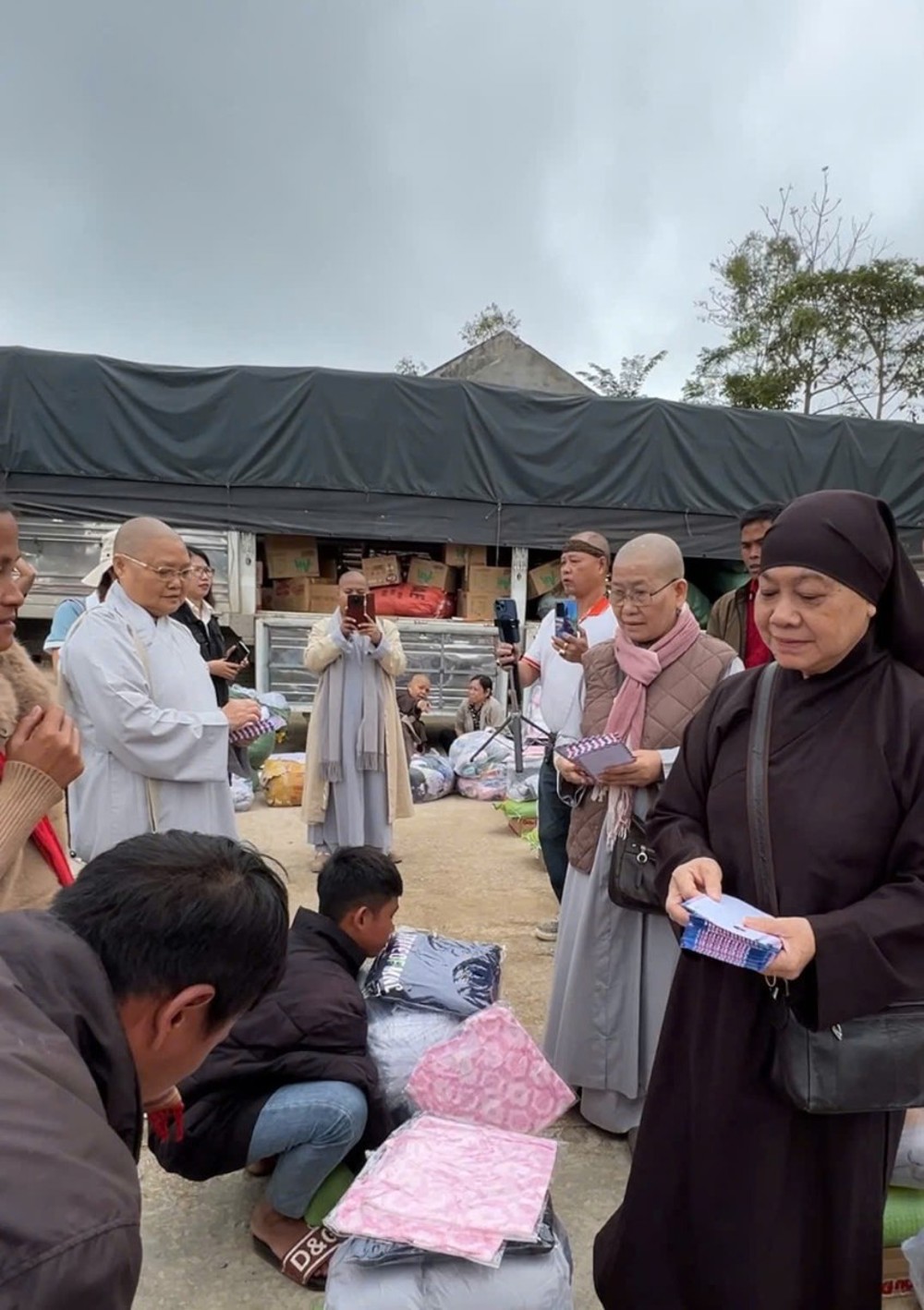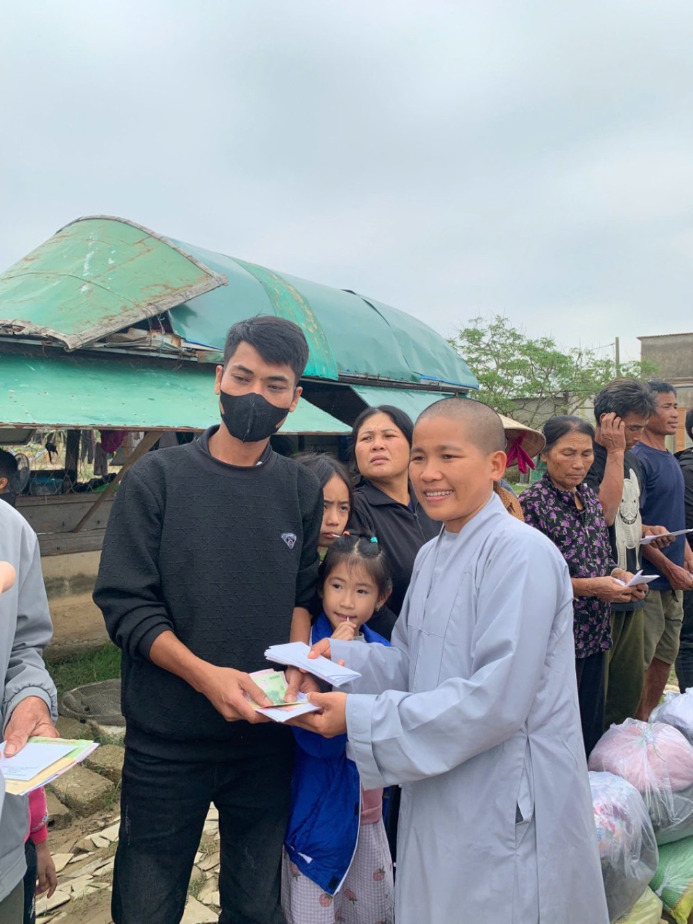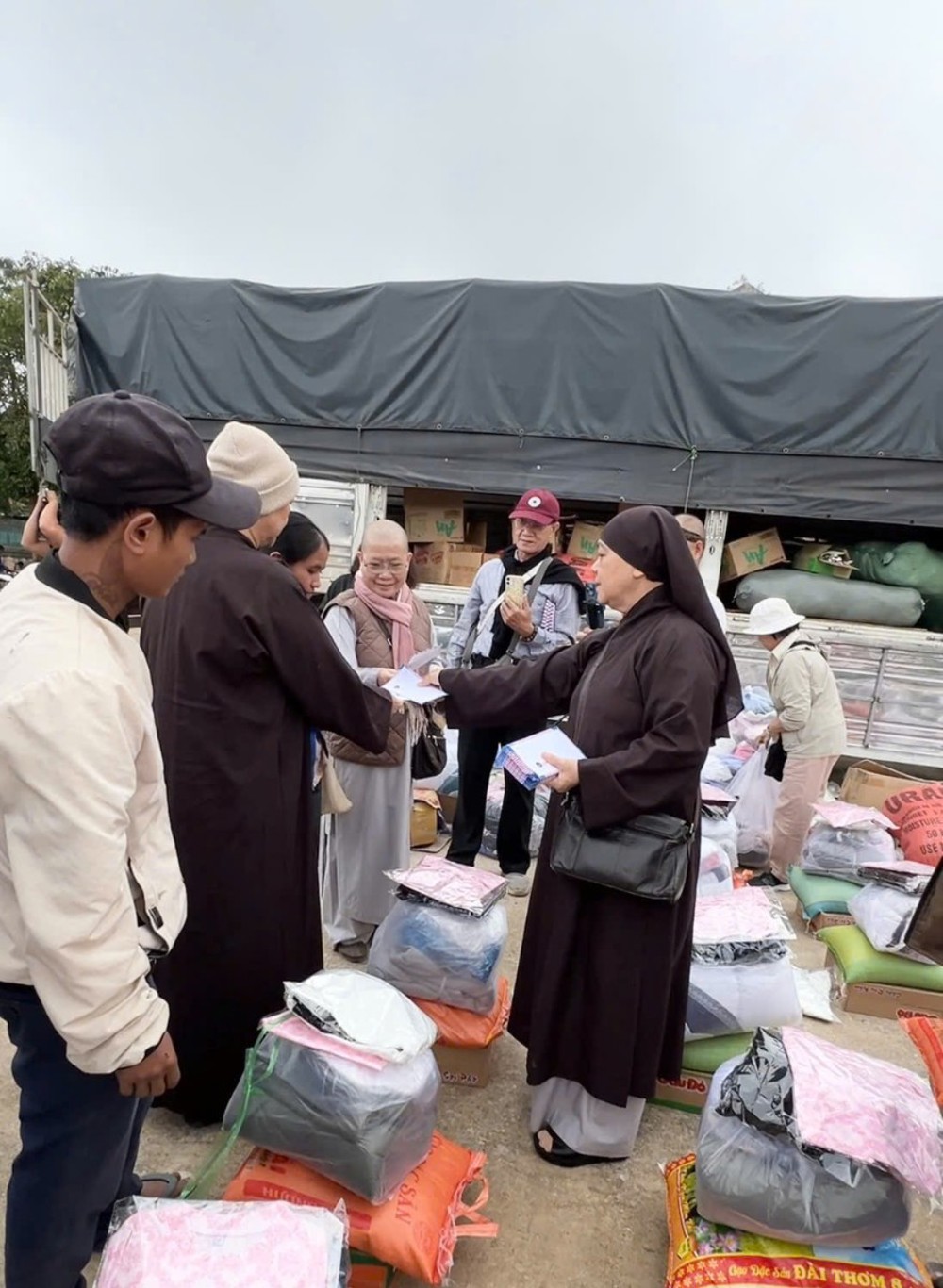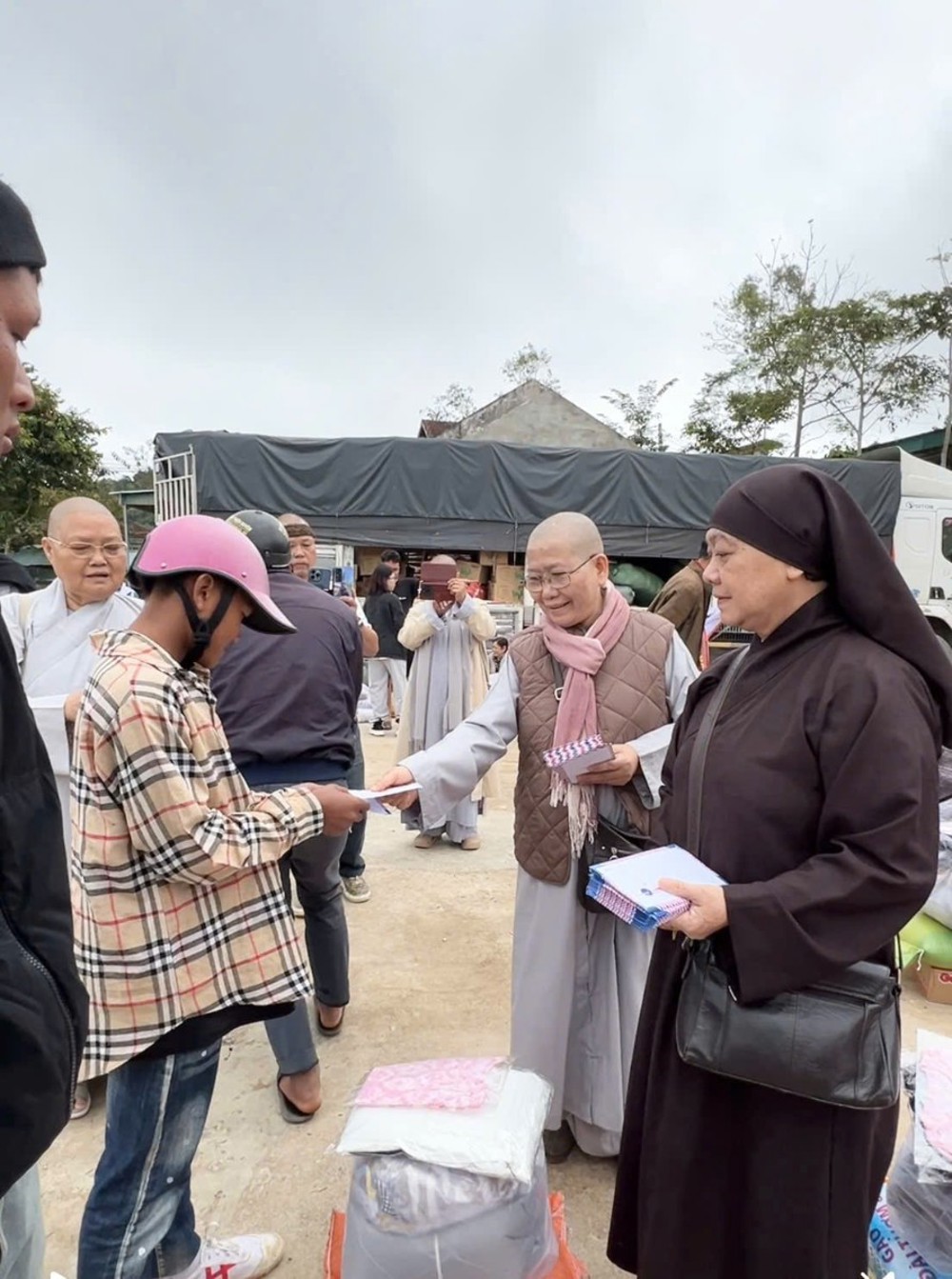 Mỗi phần quà trao đi là một lời nhắn gửi yêu thương, là ngọn đèn nhỏ thắp sáng niềm tin giữa những ngày tối tăm, đúng như lời Phật dạy: “Một ngọn đèn thắp lên có thể soi sáng muôn nghìn ngọn đèn khác”. Tại mỗi điểm đến, chư Tôn đức Ni đều không khỏi xót xa khi chứng kiến những căn nhà bị tốc mái, những giọt mồ hôi và nước mắt của người dân bỗng hóa thành nỗi đau vì thiên tai.