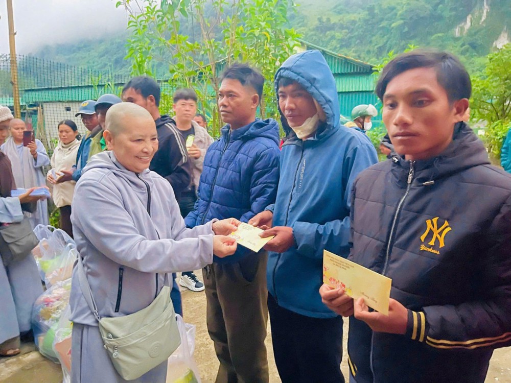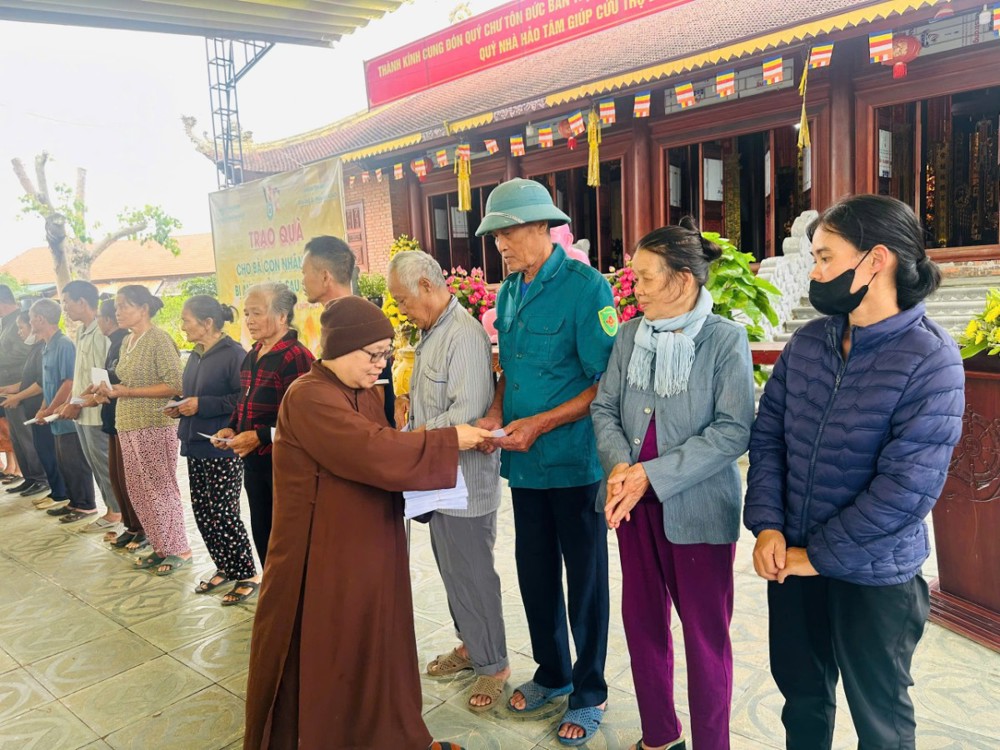 Những phần quà mang cả tấm lòng yêu thương, tinh thần nhân ái của chư Tôn đức Ni, quý Phật tử mạnh thường quân đồng lòng hướng về san sẻ tình người trong lúc khó khăn, là minh chứng sinh động cho sự gắn kết giữa đạo pháp và dân tộc, đặc biệt trong những lúc người dân gặp thiên tai, hoạn nạn, giúp bà con nơi vùng bão lũ thêm ấm lòng, vững bước trang trải để sửa sang lại nhà cửa và tiếp tục duy trì đời sống thường nhật.