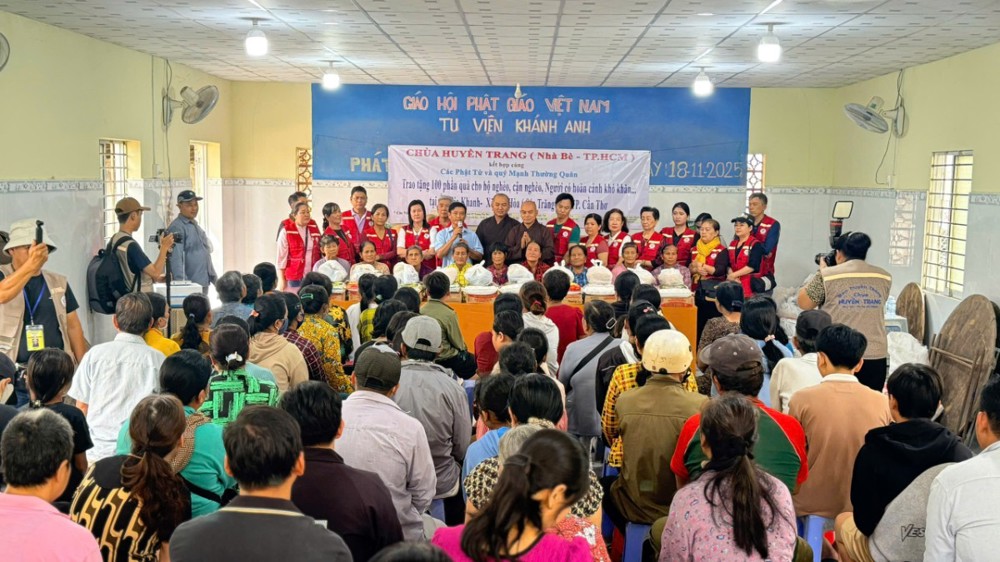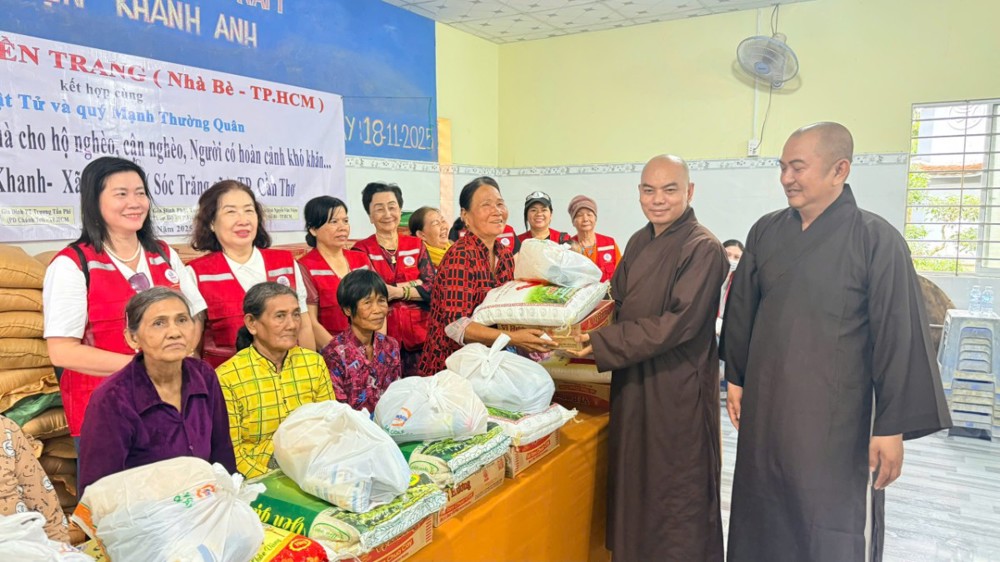 PSO - Ngày 22/11/2025, dưới sự hướng dẫn của Đại đức Thích Giác Tiến, Tri sự chùa Huyền Trang (huyện Nhà Bè, TP.HCM), đoàn Phật tử chùa Huyền Trang đã phối hợp với Đoàn Thầy thuốc Tình nguyện Hội Chữ thập đỏ TP.HCM triển khai chương trình an sinh xã hội tại tỉnh Cà Mau và TP.Cần Thơ.