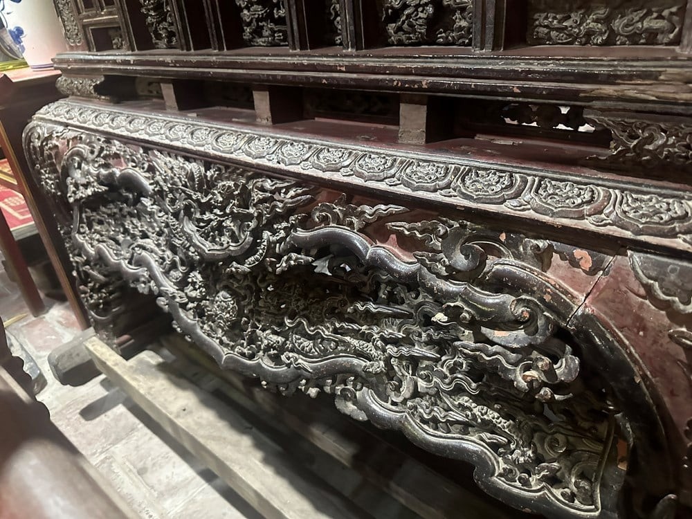 Những nét đao mác vút lên, các đường chạm rồng mềm mại thể hiện kỹ nghệ điêu khắc bậc thầy của những người thợ thủ công cách đây gần 400 năm.