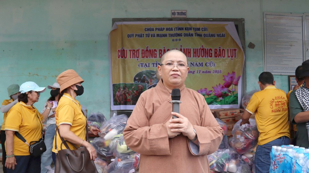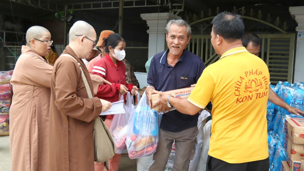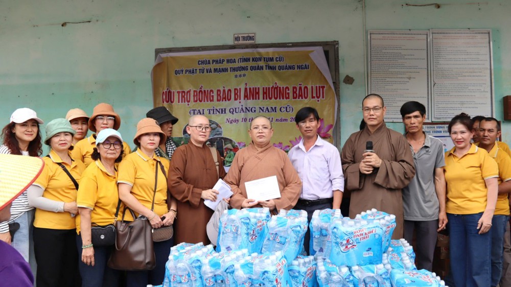 Đồng tháp tùng cùng Ni sư có Ni sư Thích Nữ Liên Duyên, chư Ni, Phật tử chùa Pháp Hoa cùng quý mạnh thường quân. Đoàn đã vượt hàng trăm cây số, mang theo tấm lòng yêu thương, sẻ chia và tinh thần tương thân tương ái đến với bà con vùng bị thiên tai.