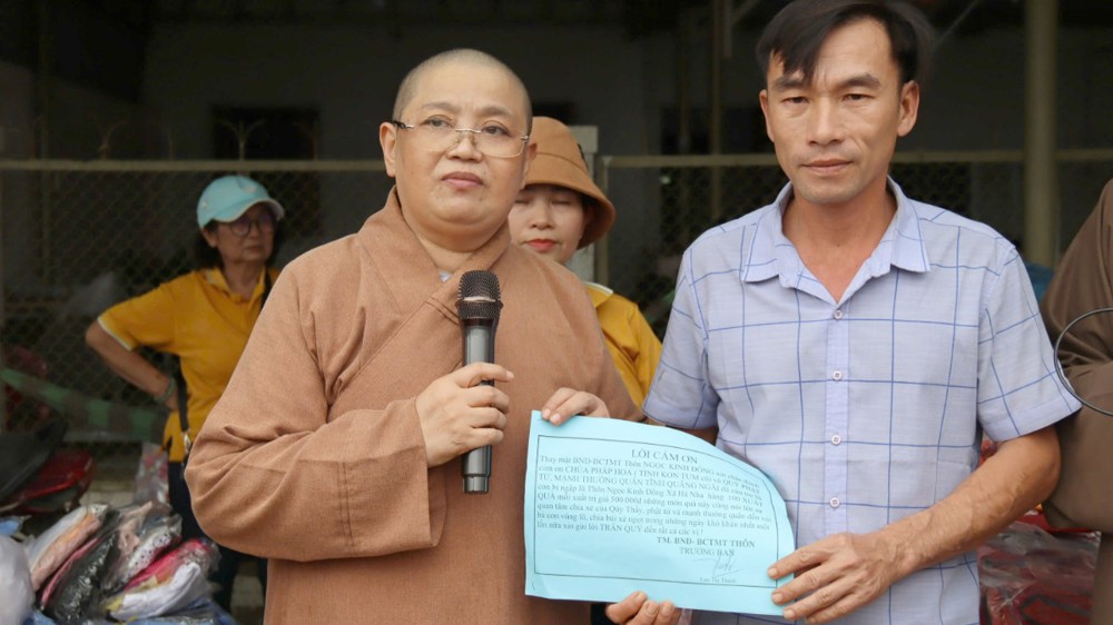 Đại diện chính quyền địa phương cũng gửi lời cảm ơn sâu sắc đến quý chư Tăng Ni cùng quý nhà hảo tâm đã chung tay cùng cộng đồng chăm lo đời sống nhân dân vùng thiên tai.