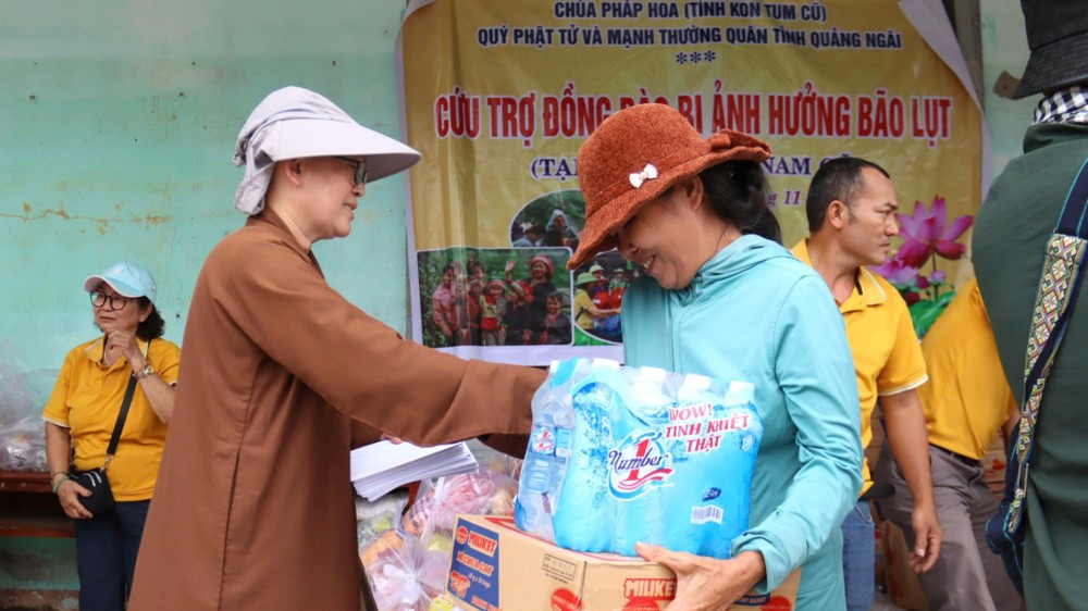PSO - Trong tinh thần “lá lành đùm lá rách”, sáng ngày 10/11/2025, NS. Thích Nữ Chúc Giác – Thủ quỹ Ban Trị sự, Phó Thường trực Phân ban Ni giới GHPGVN tỉnh Quảng Ngãi, Trụ trì chùa Pháp Hoa xã Đăk Rơ Wa (phía Tây tỉnh Quảng Ngãi), đã dẫn đoàn thiện nguyện đến thăm và trao quà cứu trợ cho bà con bị ảnh hưởng do mưa lũ tại xã Nam Sơn và xã Hà Nha, TP. Đà Nẵng.