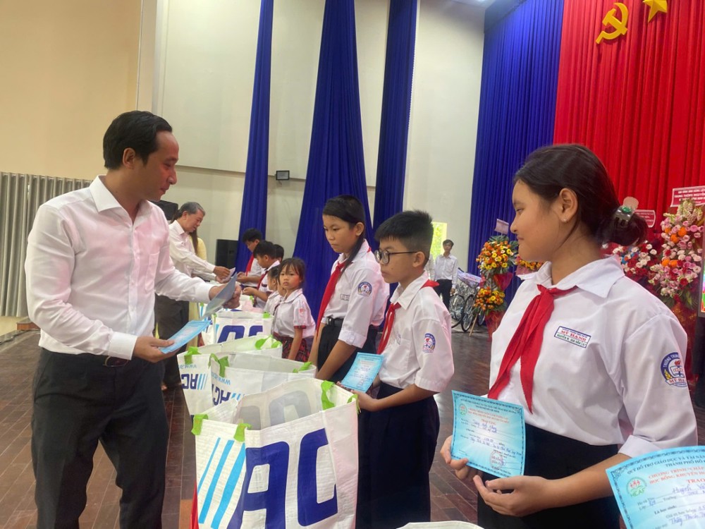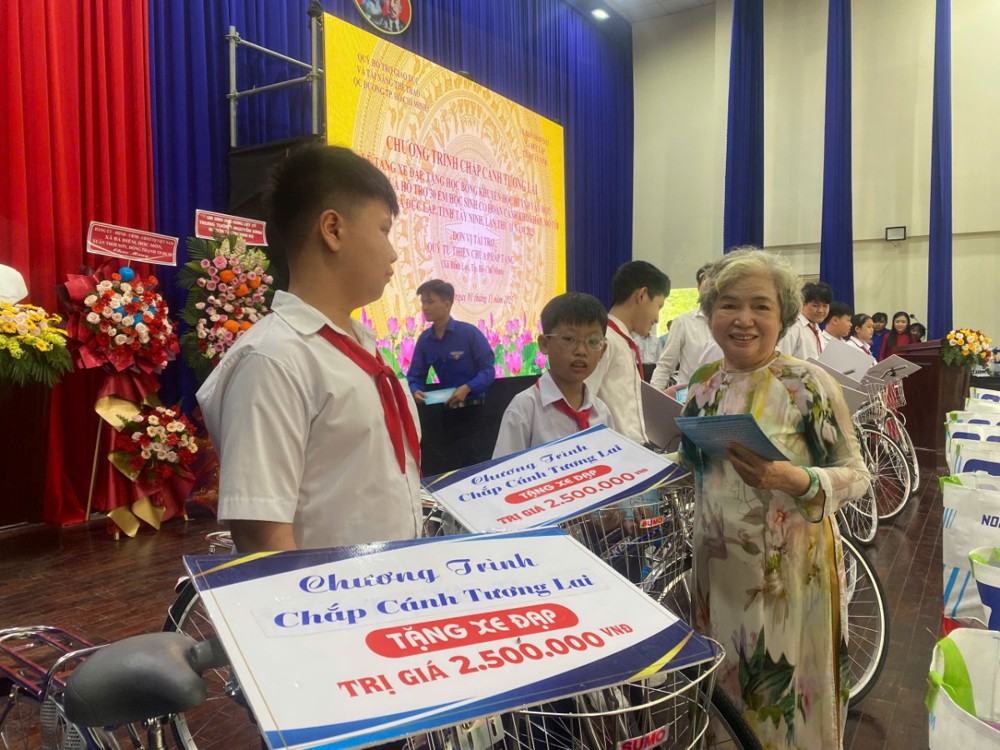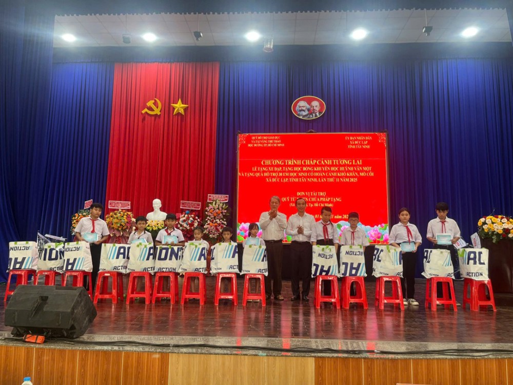 Cũng trong dịp này, chùa Pháp Tạng tài trợ kết hợp Quỹ Hỗ Trợ Giáo Dục Tài Năng Thể Thao Học Đường TPHCM trao 15 xe đạp, 15 học bổng và 30 suất quà cho các em học sinh xã Đức Lập, tỉnh Tây Ninh. Kinh phí thực hiện 72 triệu đồng.