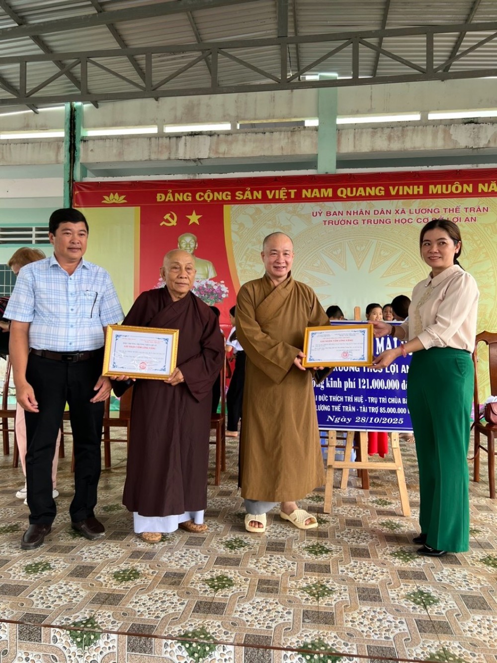 Buổi lễ có sự chứng minh của Thầy Thích Trí Đức – Phó Trụ trì chùa Bảo Tạng; cùng tham dự có ông Ngô Trường Đời – Hiệu trưởng Trường THCS Lợi An và ông Dương Huyền Trân – Trưởng phòng Văn hóa – Xã hội xã Lương Thế Trân.