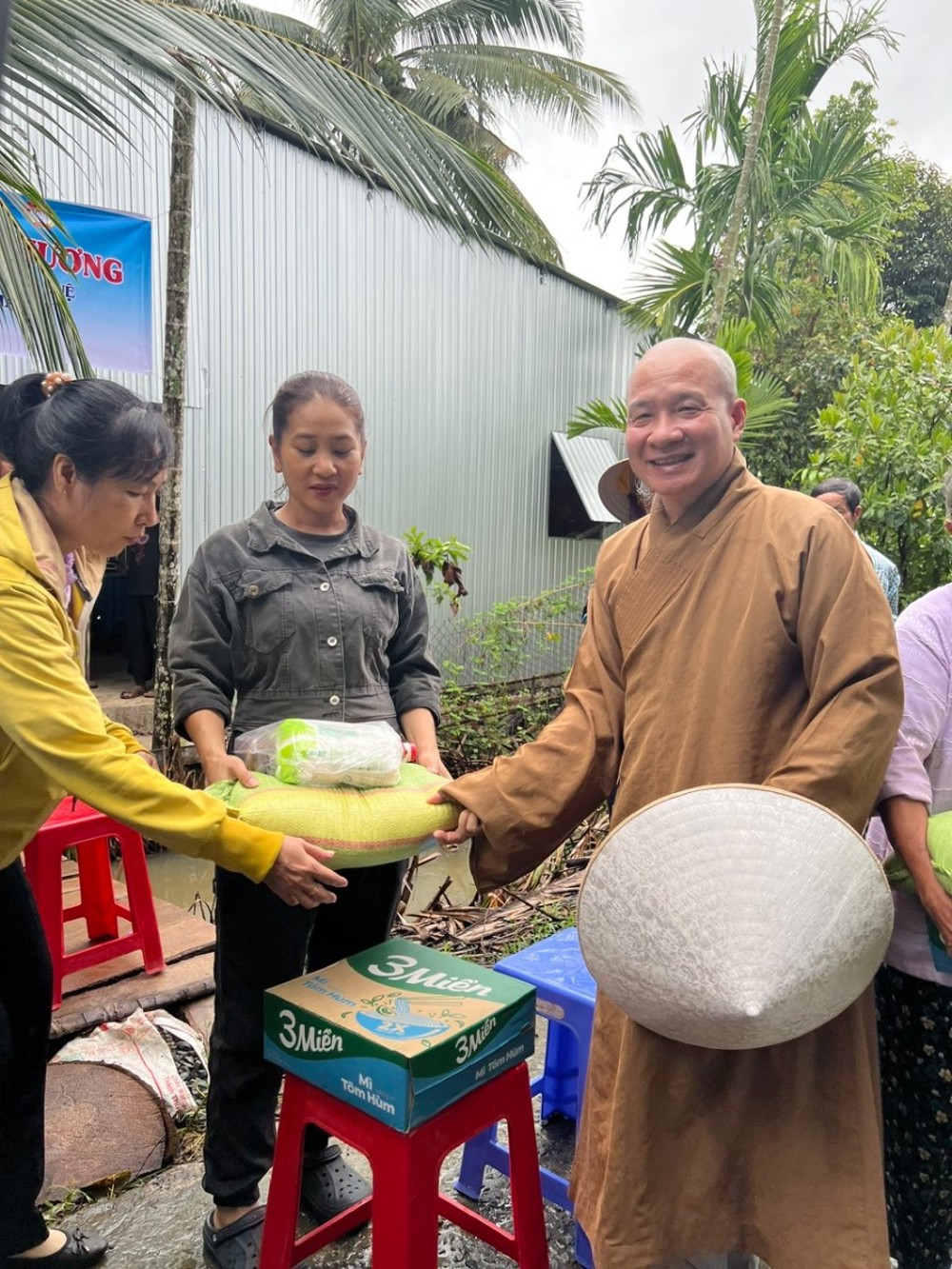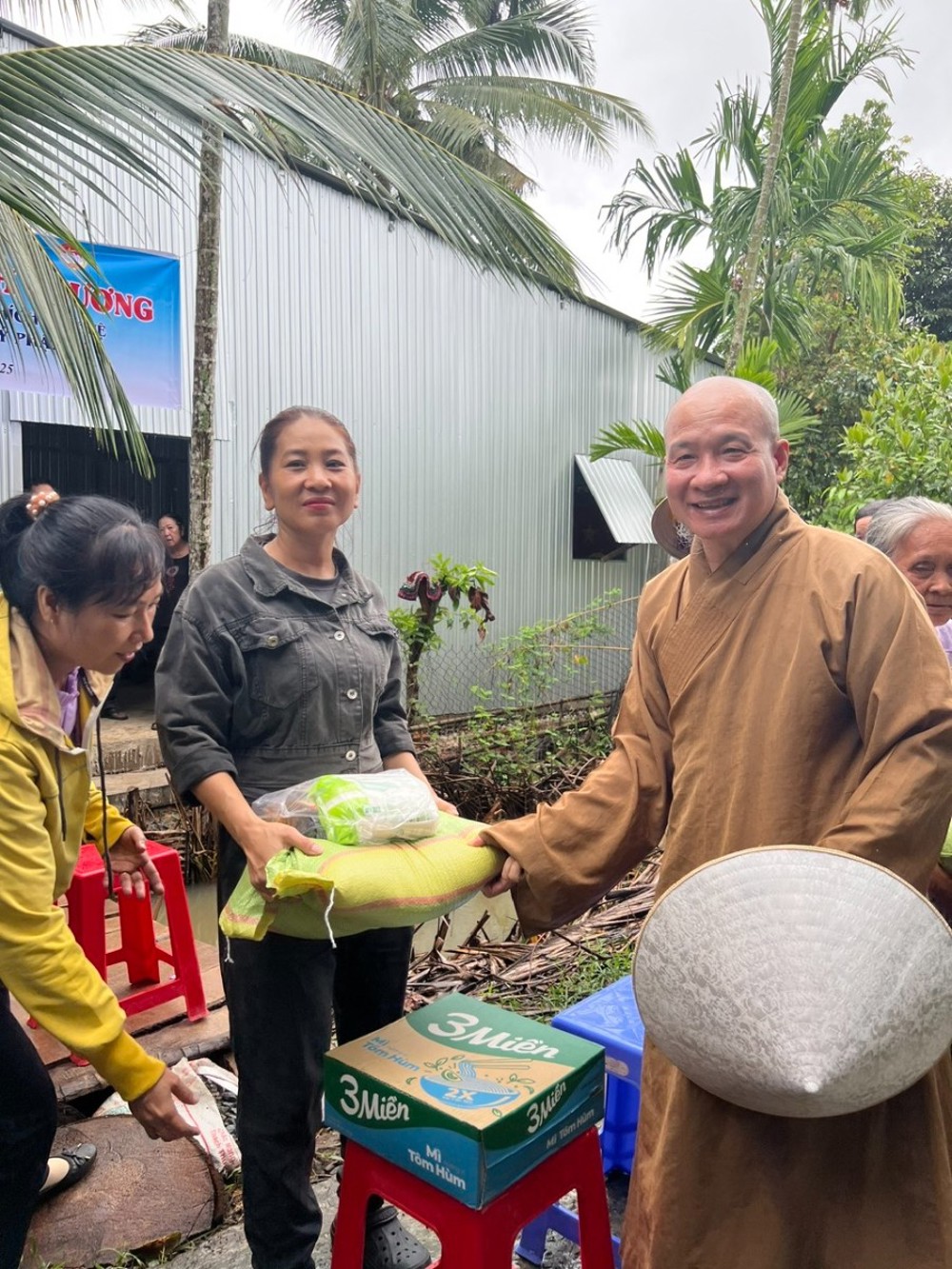 Niềm vui hiện rõ trên khuôn mặt của người dân khi nhận được sự quan tâm, sẻ chia từ phái đoàn từ thiện và các mạnh thường quân – thể hiện tinh thần “Phụng sự nhân sinh, tốt đời đẹp đạo”.