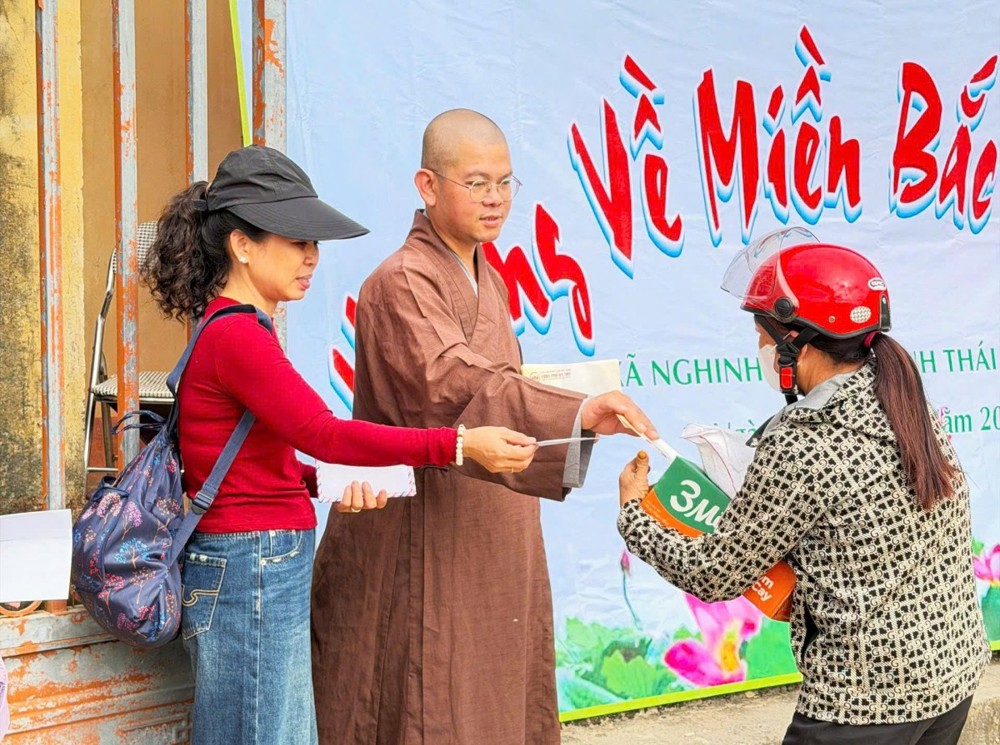Ngày 22-10 (nhằm mùng 2 tháng 9 năm Ất Tỵ), đoàn do Đại đức Thích Phước Bảo, chùa Phổ Đà Sơn, dẫn đầu đã trực tiếp đến xã Nghinh Tường, tỉnh Thái Nguyên để trao quà hỗ trợ cho các hộ dân có hoàn cảnh khó khăn và các em thiếu nhi bị ảnh hưởng nặng nề sau thiên tai.