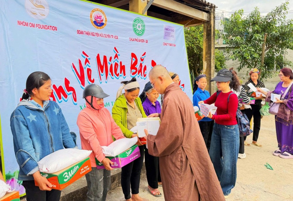 PSO - Do ảnh hưởng nghiêm trọng của hoàn lưu bão số 11, mưa lớn kéo dài đã gây ra trận lũ lịch sử tại tỉnh Thái Nguyên, khiến nhiều khu vực bị ngập sâu, gây thiệt hại nặng nề về tài sản và đời sống nhân dân. Với tinh thần “từ bi cứu khổ” của đạo Phật và truyền thống tương thân tương ái của dân tộc, chùa Phổ Đà Sơn (phường Phú Định, TP. Hồ Chí Minh) phối hợp cùng Hội Từ thiện Hữu Duyên và quý Phật tử đã tổ chức chuyến thiện nguyện trao quà cứu trợ đến bà con vùng lũ.