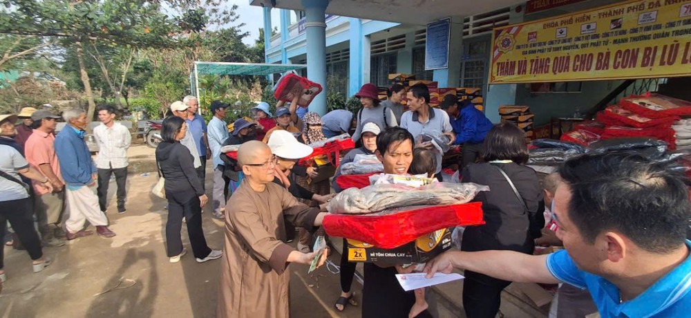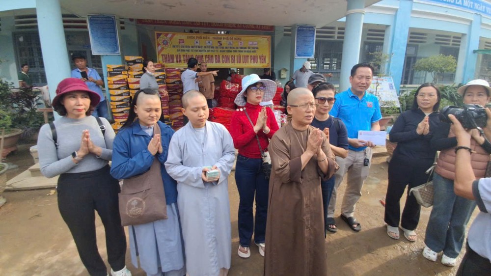 Vừa mới trở về Đà Nẵng vào chiều ngày 19/11 sau chuyến hỗ trợ bà con tại Bình Định và Phú Yên sau cơn bão số 13 (Kalmaegi) với tổng kinh phí 270 triệu đồng. Thế nhưng trước những mất mát của bà con nơi vùng lũ, với tinh thần Từ Bi của những người con Phật, với tình đồng bào, nghĩa dân tộc, Ni sư Thích Nữ Minh Hiền - Ủy viên Thường trực Ban Trị sự GHPGVN Tp Đà Nẵng, Trú trì chùa Phổ Hiền – 02 Trần Huy Liệu, phường Hòa Cường, Tp Đà Nẵng đã vận động các nhà hảo tâm cùng Phật tử chung tay hỗ trợ bà con bị thiên tai lũ lụt.
