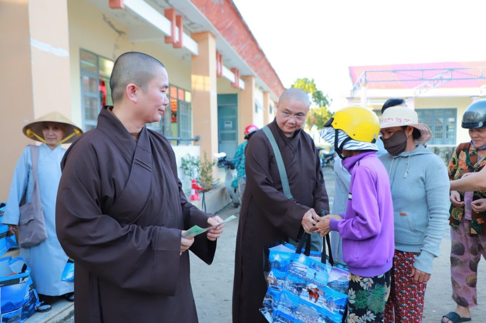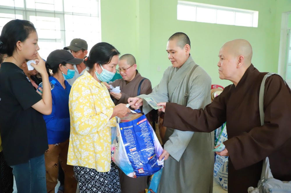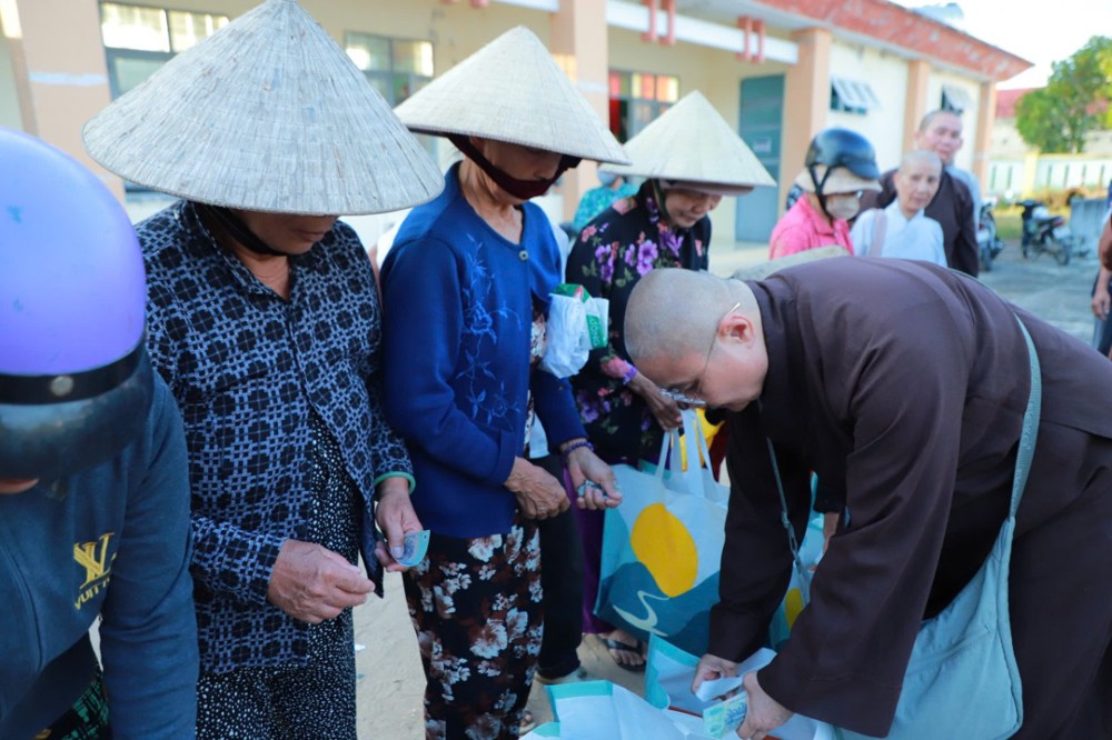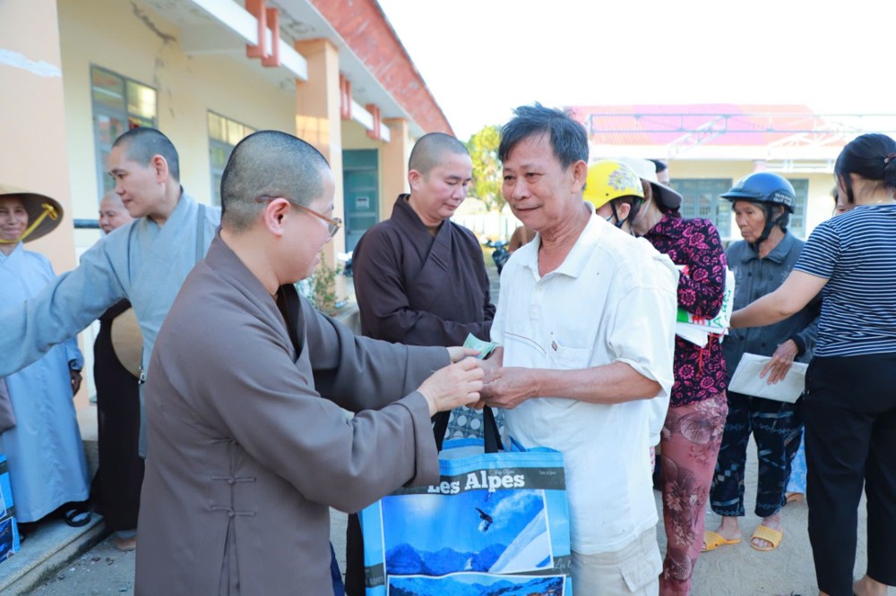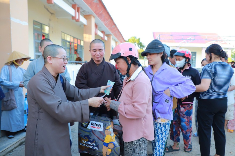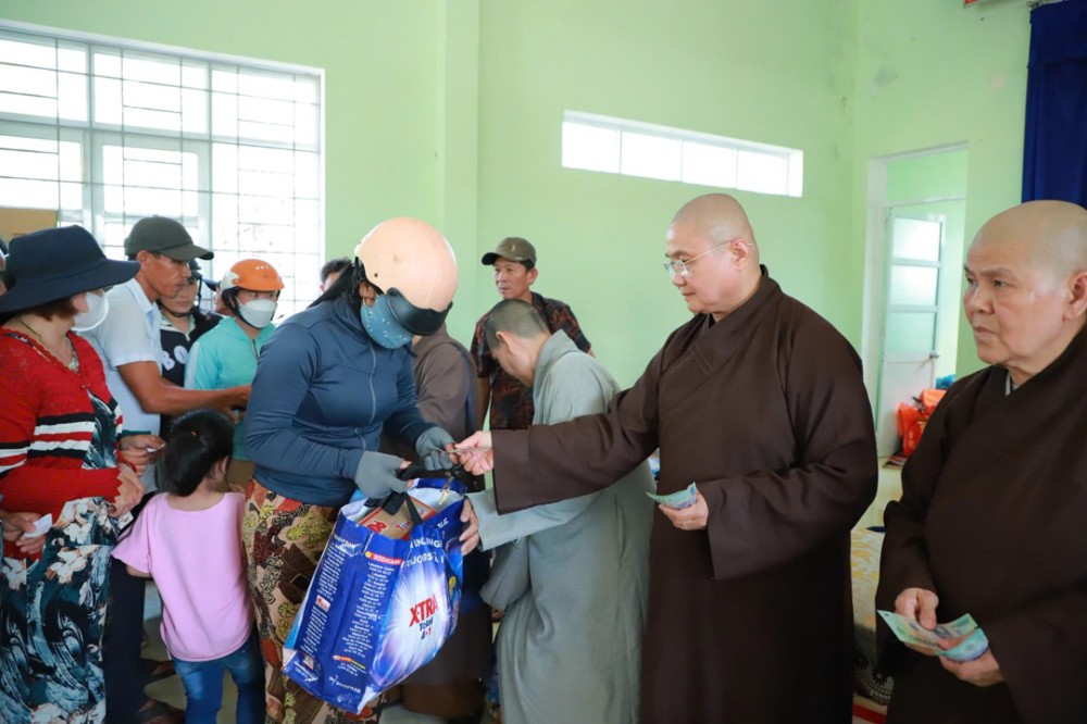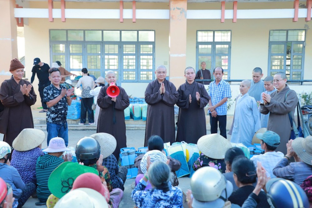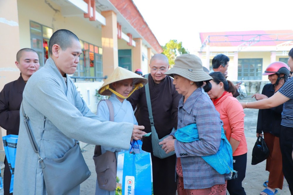 Đoàn từ thiện do Ni sư Thích Nữ Chúc Tường – Trụ trì chùa Kiều Đàm làm trưởng đoàn; Ni sư Thích Nữ Từ Hạnh – Trụ trì chùa Thiền Lâm làm phó đoàn; cùng chư Tôn đức Ni trụ trì các tự viện TP.HCM đã trực tiếp trao 600 phần quà đến bà con tại các điểm: Nam Trà My, Bắc Trà My (Quảng Nam cũ); xã Nhơn Lý và phường Quy Nhơn Nam (Bình Định cũ); xã Đồng Xuân và xã Xuân Lộc (Phú Yên cũ).