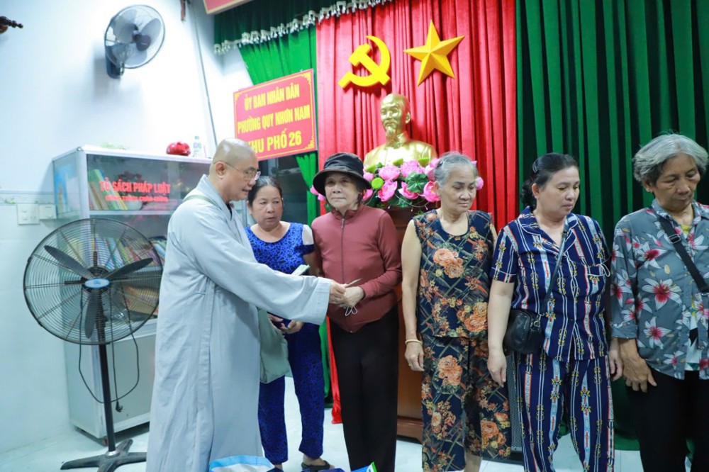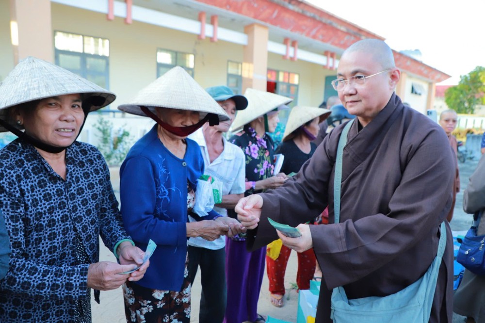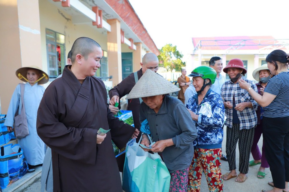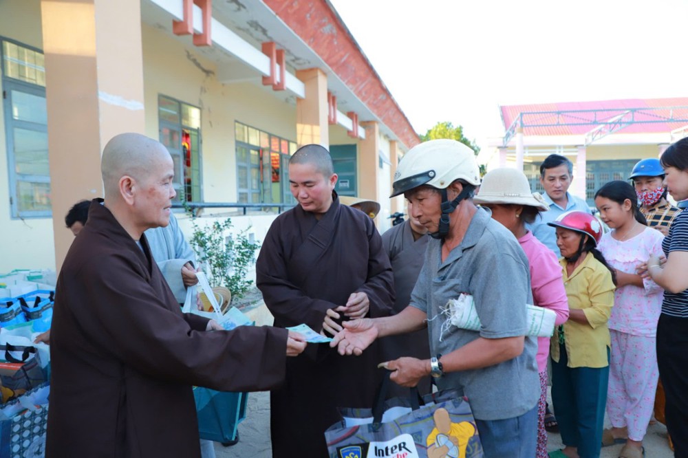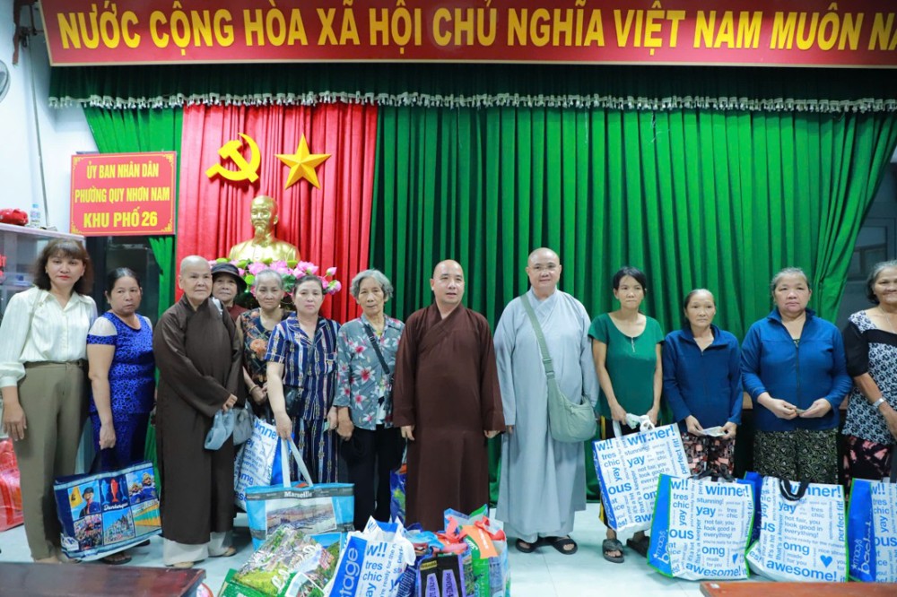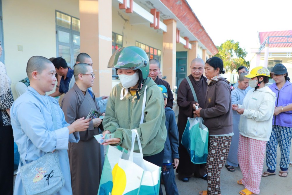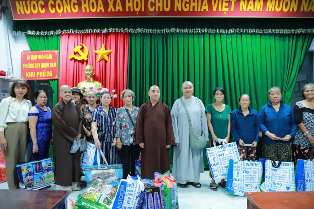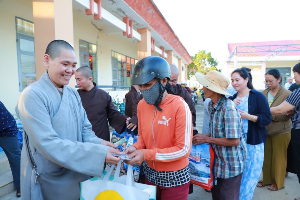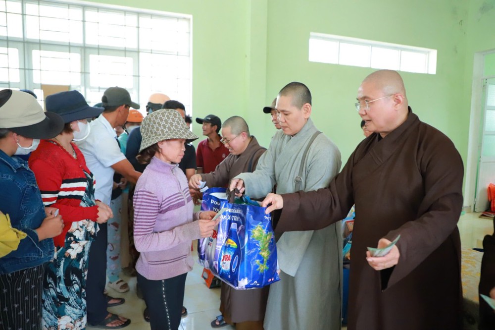 Đoàn từ thiện do Ni sư Thích Nữ Chúc Tường – Trụ trì chùa Kiều Đàm làm trưởng đoàn; Ni sư Thích Nữ Từ Hạnh – Trụ trì chùa Thiền Lâm làm phó đoàn; cùng chư Tôn đức Ni trụ trì các tự viện TP.HCM đã trực tiếp trao 600 phần quà đến bà con tại các điểm: Nam Trà My, Bắc Trà My (Quảng Nam cũ); xã Nhơn Lý và phường Quy Nhơn Nam (Bình Định cũ); xã Đồng Xuân và xã Xuân Lộc (Phú Yên cũ).