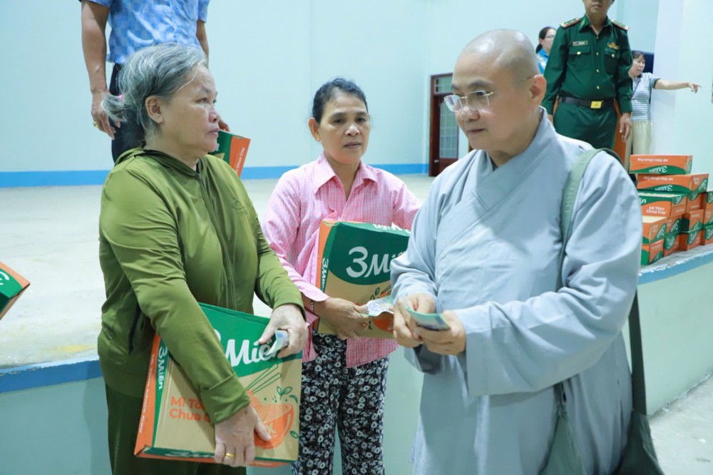 Phát biểu tại các điểm trao quà, Ni sư Thích Nữ Chúc Tường chia sẻ: “Những phần quà hôm nay là tấm lòng của chư Ni TP.HCM, quý Phật tử và mạnh thường quân trong và ngoài nước, mong góp phần giúp bà con vượt qua khó khăn trước mắt, ổn định đời sống và tiếp tục vững bước trong cuộc sống.”