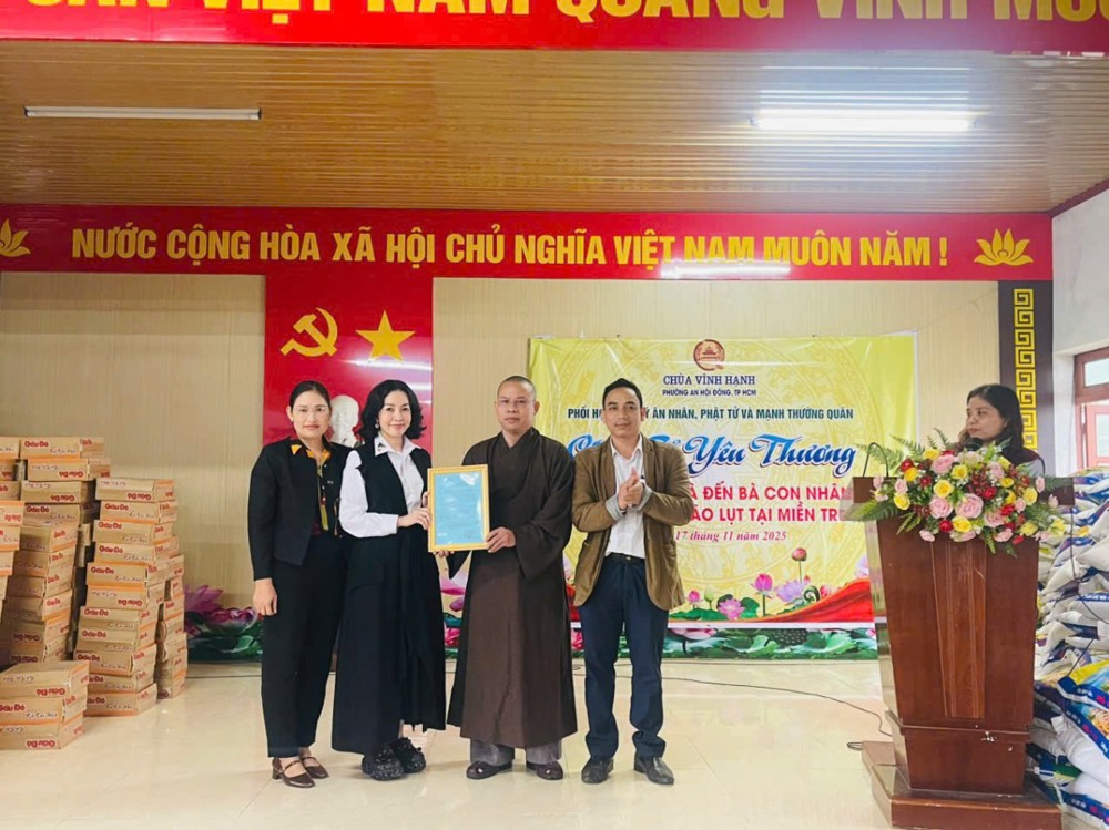 PSO - Sáng 17/11/2025, chùa Vĩnh Hạnh (TP.HCM) phối hợp cùng quý Phật tử và các mạnh thường quân tổ chức chuyến thăm hỏi, trao quà và động viên tinh thần bà con vùng lũ tại Quảng Nam (cũ) trong những ngày đầu khắc phục hậu quả bão lũ.