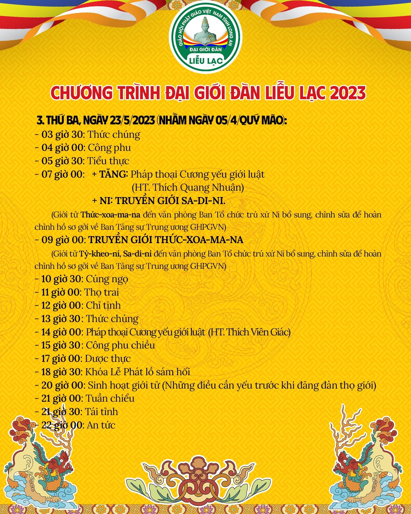 – 08 giờ 00 : Chính thức Lễ khai mạc Đại giới đàn Liễu Lạc (có chương trình riêng).