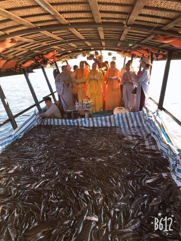 Trước khi trở về Hoa Kỳ, Ni sư Phượng Liên và Sư cô Cương Liên trải tâm từ đến các loài thủy tộc và thắp hoa đăng trên dòng sông Tiền Giang, tất cả công đức thành kính dâng lên cúng dường Đệ nhất cố Ni trưởng - nhân ngày lễ Tưởng niệm lần thứ 32 của Người, đồng cầu nguyện cho những nhà thí chủ và quý Mạnh Thường Quân trợ duyên cho chuyến Từ thiện và phóng sinh này luôn được: "Sống lâu, sắc tốt, yên vui, sức mạnh và trí huệ ". Tổng kinh phí cho chuyến từ thiện là 329.600.000đ ( ba trăm hai mươi chín triệu sáu trăm ngàn đồng).