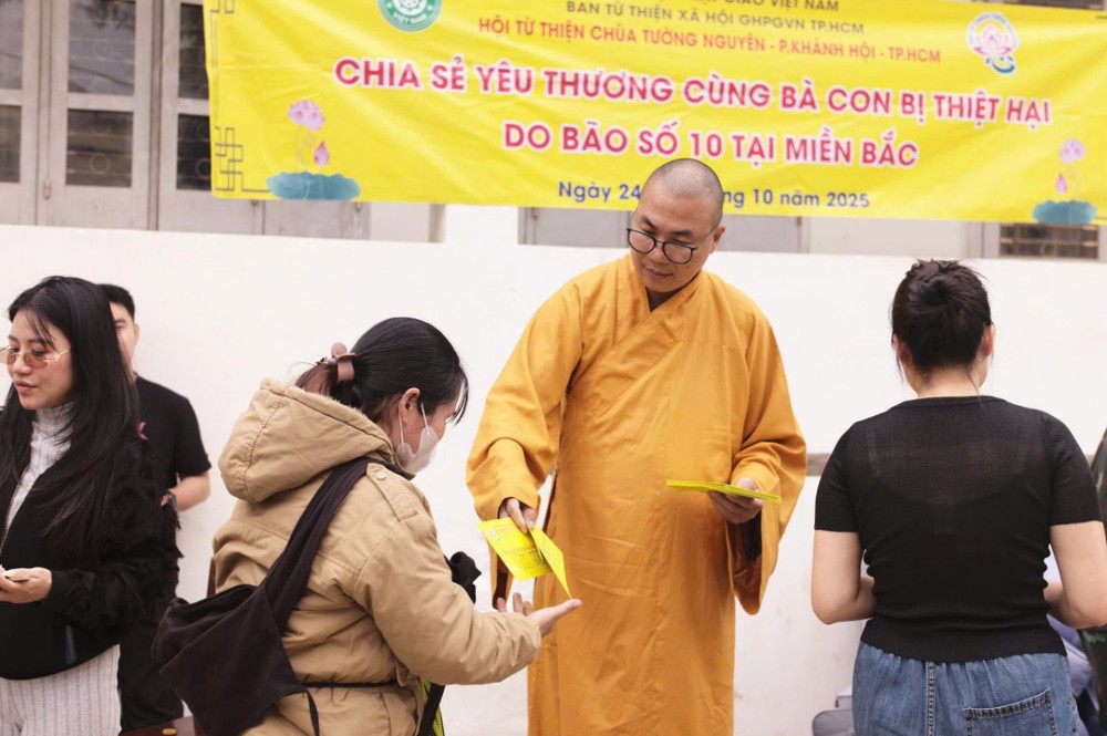 PSO - Ngày 24 và 25/10/2025 (nhằm ngày 4 và 5 tháng 9 năm Ất Tỵ), trong tinh thần “Từ bi cứu khổ – Lá lành đùm lá rách”, đoàn Ban Từ thiện xã hội Giáo hội Phật giáo TP.HCM phối hợp cùng Hội Từ thiện chùa Tường Nguyên (TP.HCM), do Thượng tọa Thích Minh Phú – Ủy viên HĐTS, Phó Ban Từ thiện Xã hội GHPGVN TP.HCM làm trưởng đoàn, đã đến thăm hỏi, động viên và trao tặng hơn 1.500 phần quà cứu trợ đến bà con chịu ảnh hưởng nặng nề bởi cơn bão số 10 tại các tỉnh miền Bắc.