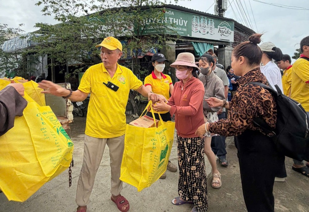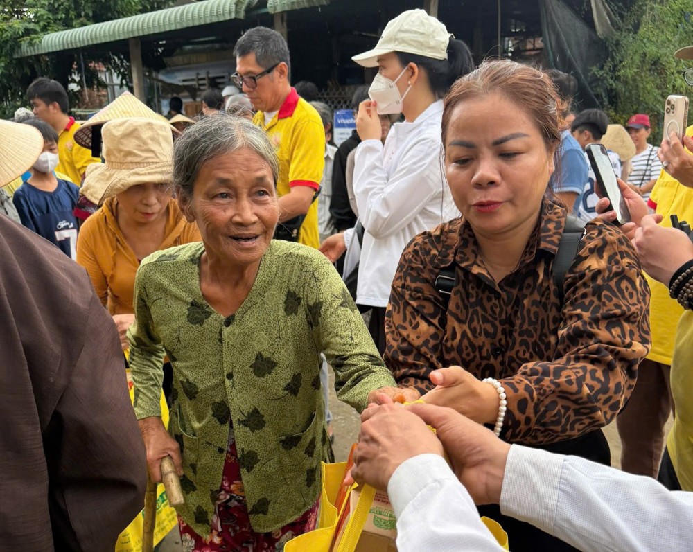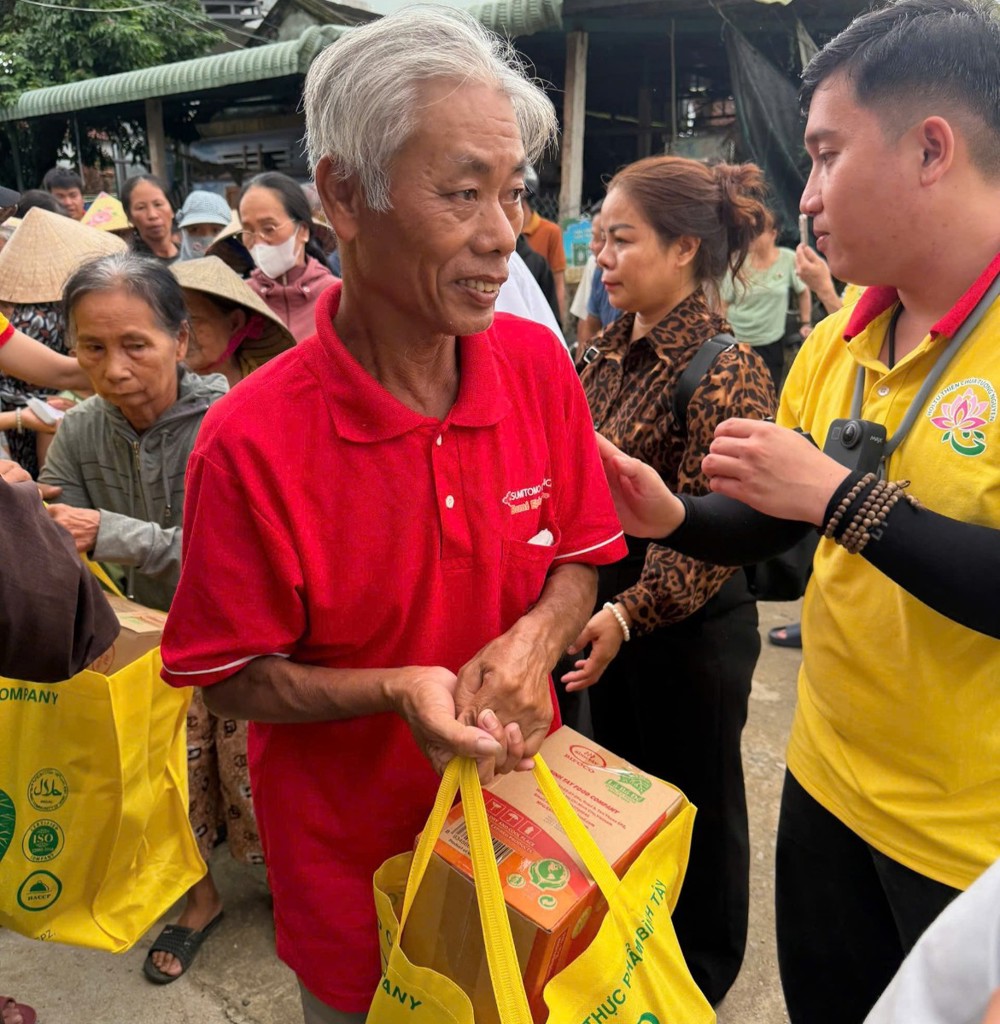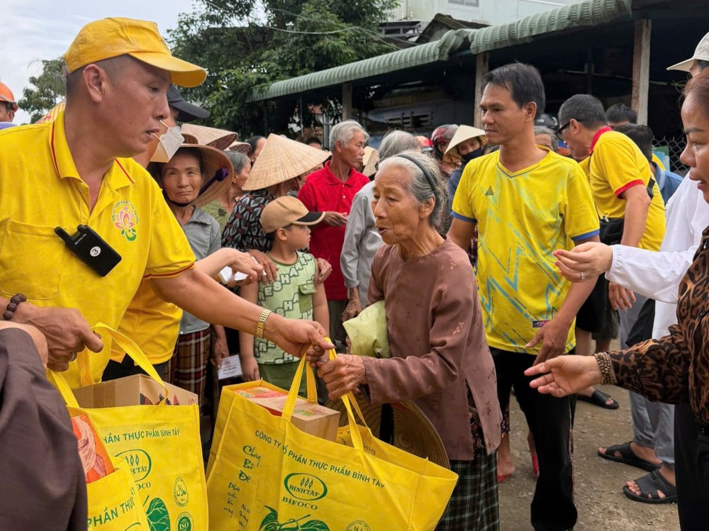 Trong ba ngày từ 31/10 đến 02/11/2025 (nhằm ngày 11 – 13 tháng 9 năm Ất Tỵ), đoàn đã trao tặng 8.000 phần quà gồm thực phẩm, nhu yếu phẩm, dầu gió và thuốc men đến tận tay người dân đang gặp khó khăn sau bão.