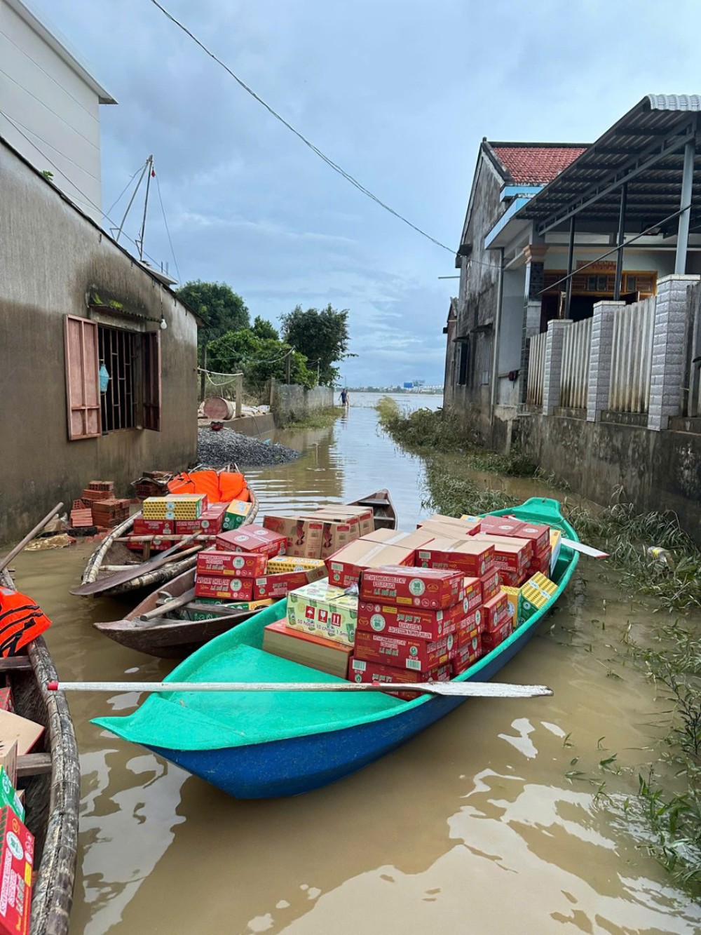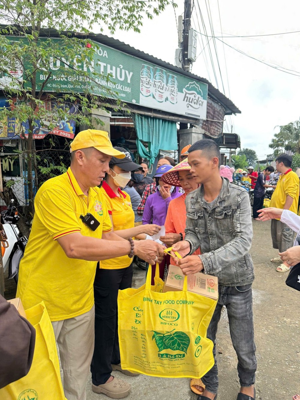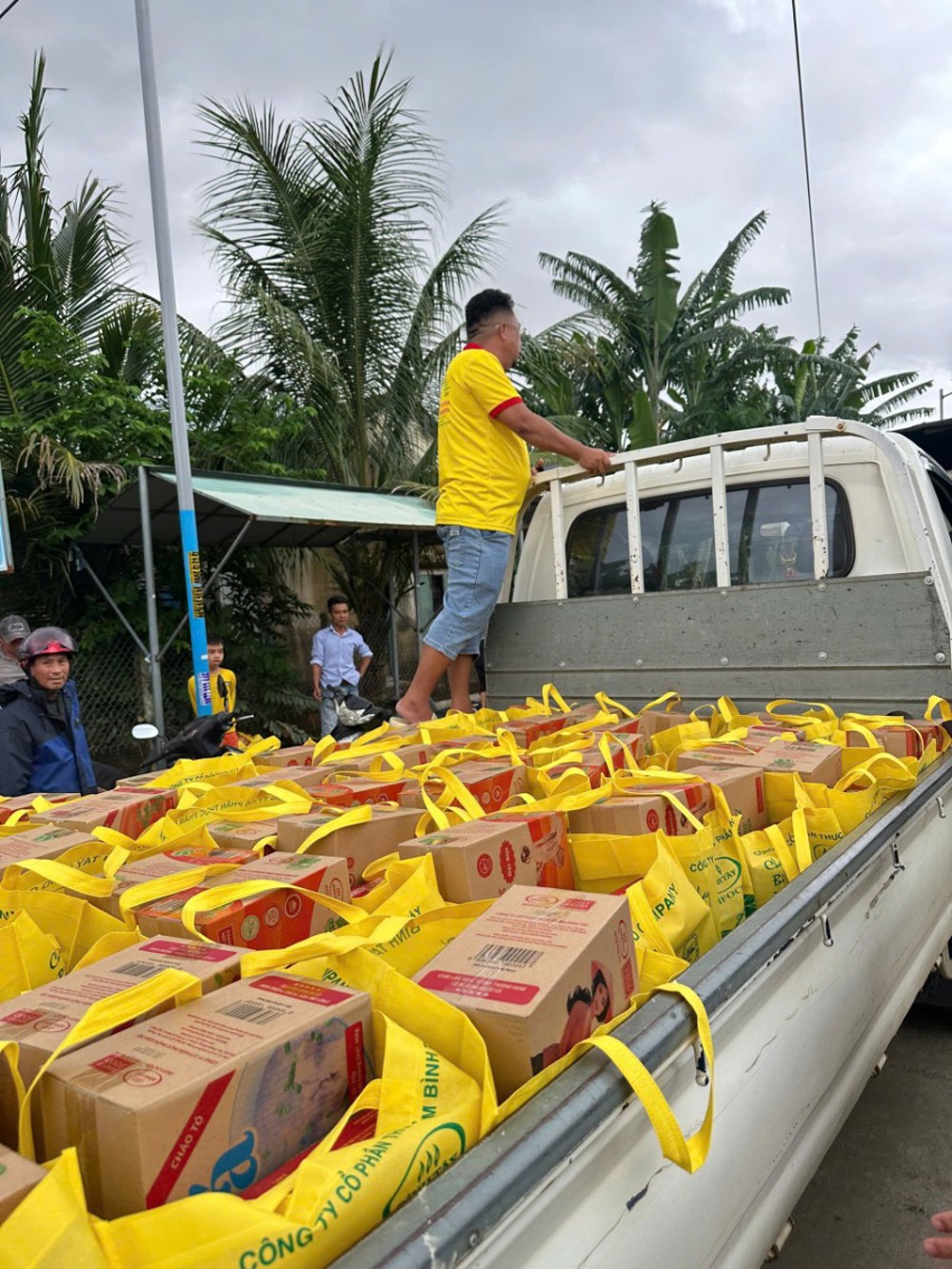 Trong ba ngày từ 31/10 đến 02/11/2025 (nhằm ngày 11 – 13 tháng 9 năm Ất Tỵ), đoàn đã trao tặng 8.000 phần quà gồm thực phẩm, nhu yếu phẩm, dầu gió và thuốc men đến tận tay người dân đang gặp khó khăn sau bão.