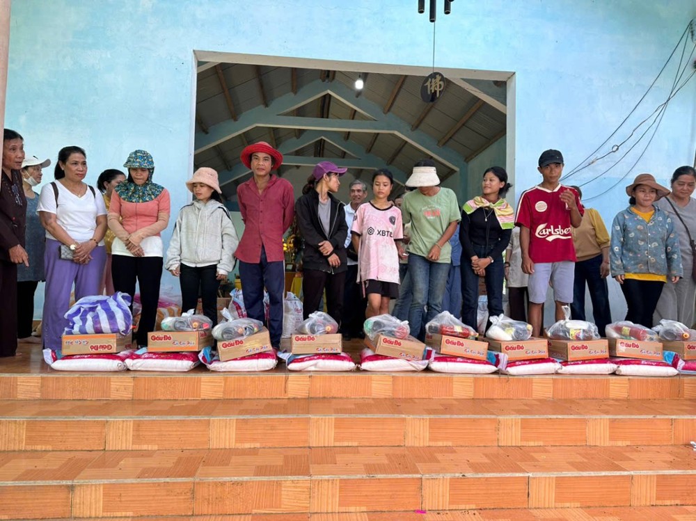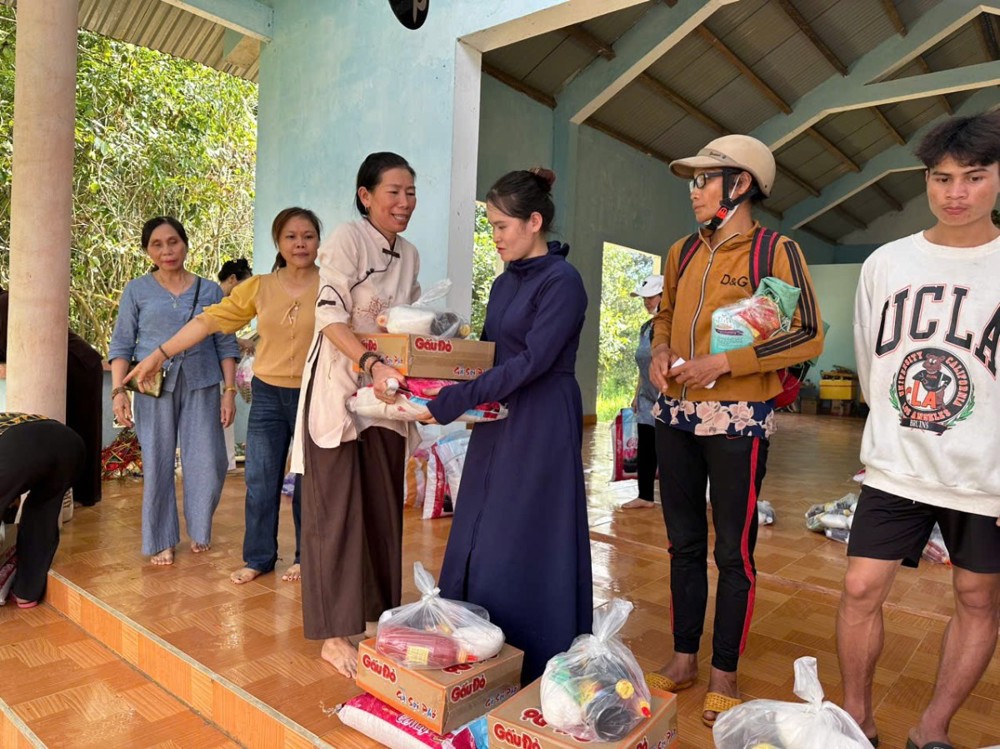 Dịp này, đoàn cũng hỗ trợ lợp 250m² tôn cho các hộ gia đình có hoàn cảnh khó khăn tại địa phương, góp phần giúp bà con ổn định cuộc sống trước mùa mưa bão.