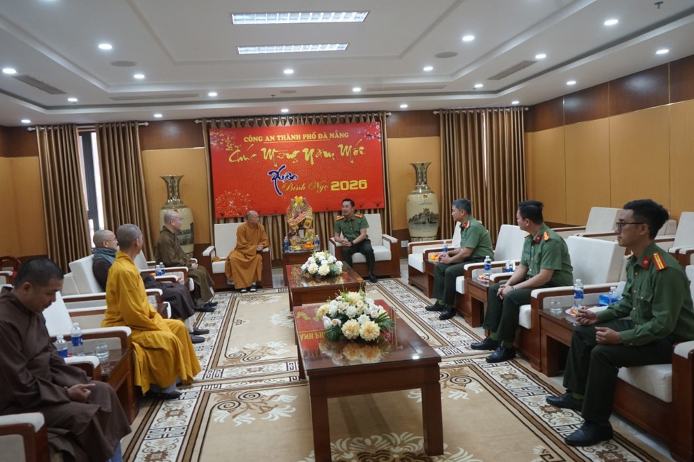 Tiếp đó, tại Văn phòng UBND thành phố, Ủy ban MTTQ Việt Nam thành phố, Ban Tuyên giáo và Dân vận Thành ủy, Công an thành phố và Sở Dân tộc và Tôn giáo thành phố, đoàn Ban Trị sự GHPGVN TP. Đà Nẵng đã gửi lời chúc mừng năm mới đến lãnh đạo các cơ quan, ban ngành nhân dịp Tết Nguyên đán Bính Ngọ 2026.