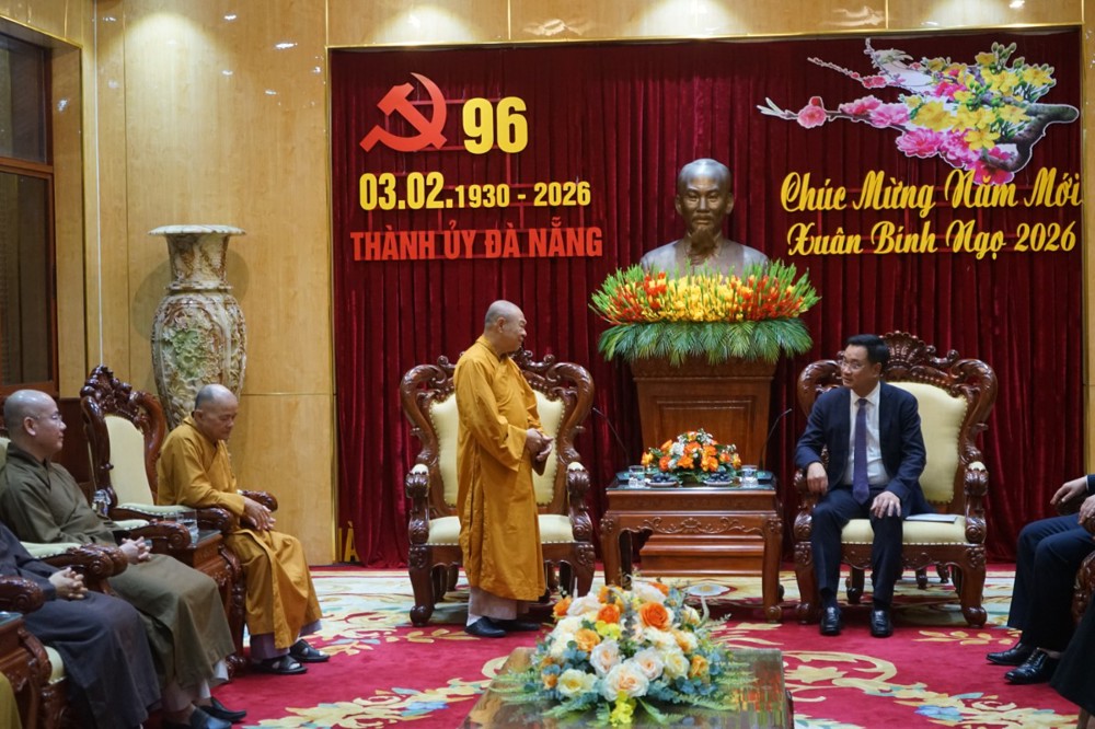 PSO – Ngày 30/01/2026 (nhằm ngày 12 tháng Chạp năm Ất Tỵ), Ban Trị sự GHPGVN TP. Đà Nẵng đã đến thăm và chúc mừng các cơ quan, ban ngành thành phố nhân kỷ niệm 96 năm Ngày thành lập Đảng Cộng sản Việt Nam (3/2/1930 – 3/2/2026) và Tết Nguyên đán Bính Ngọ 2026.