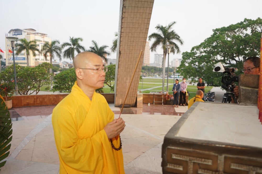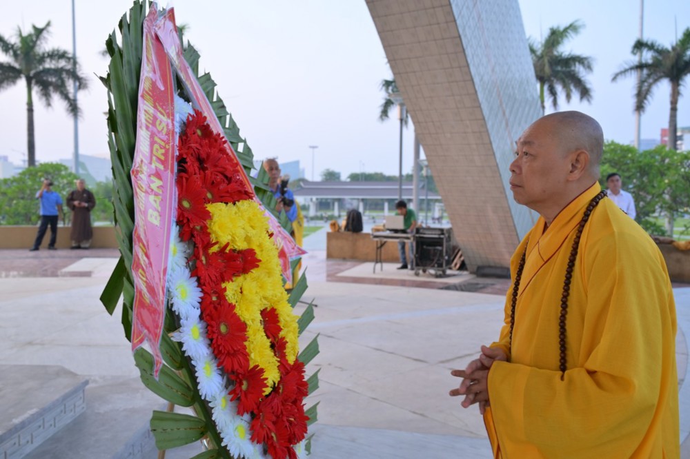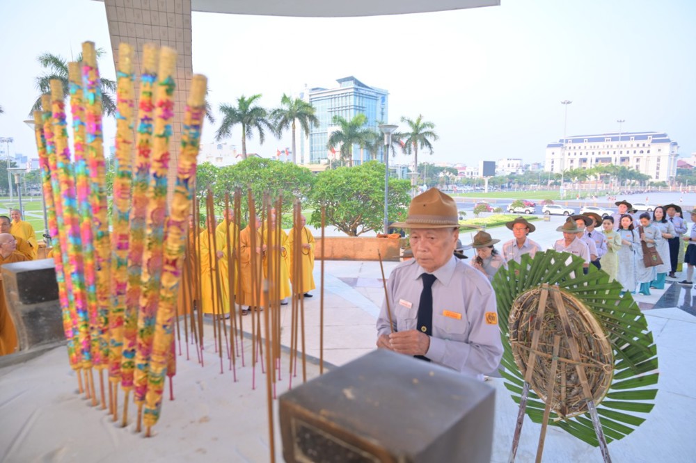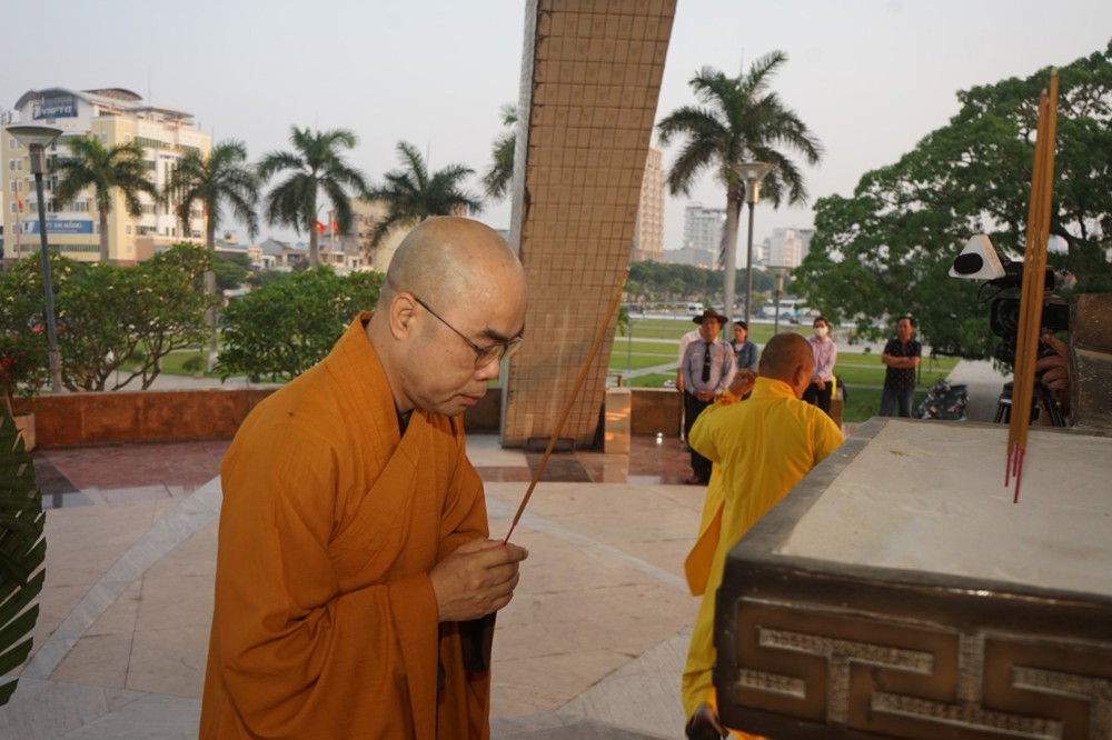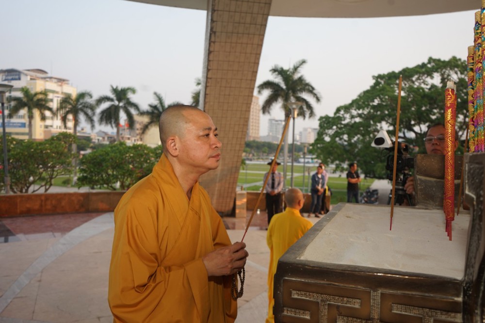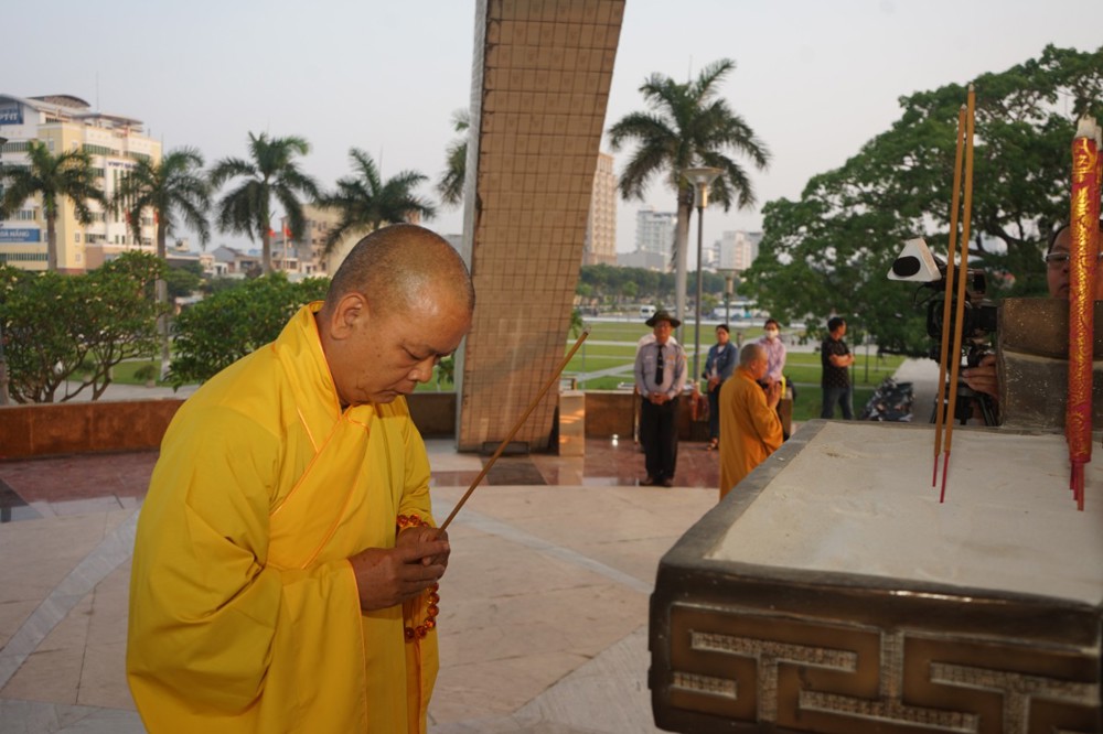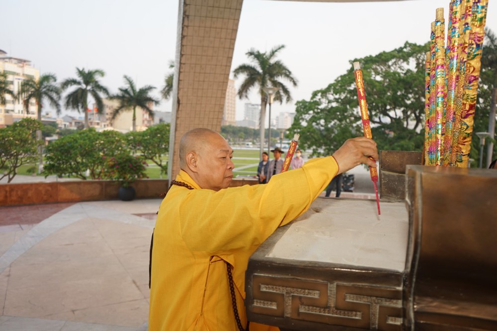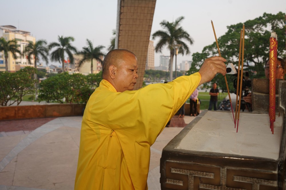 Trước đài tưởng niệm, chư tôn đức thực hiện nghi thức dâng hương, dành những giây phút tĩnh lặng để mặc niệm, tưởng nhớ và tri ân sâu sắc đến các bậc tiền nhân hữu công, những anh hùng, liệt sĩ đã hy sinh thân mình cho sự nghiệp giải phóng đất nước và hòa bình của dân tộc.