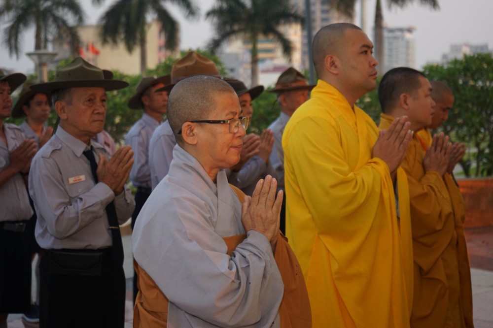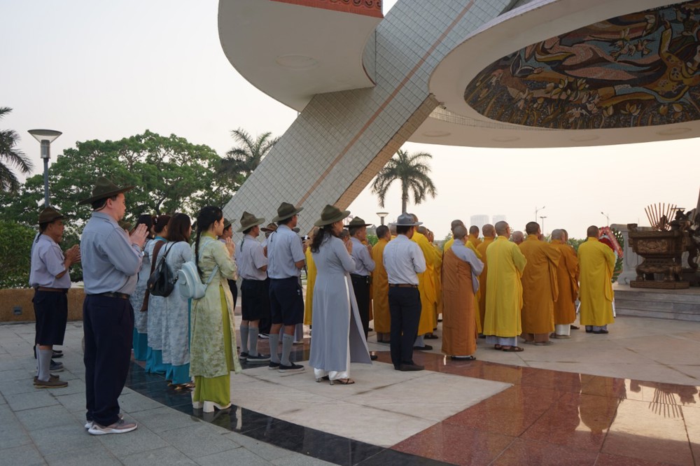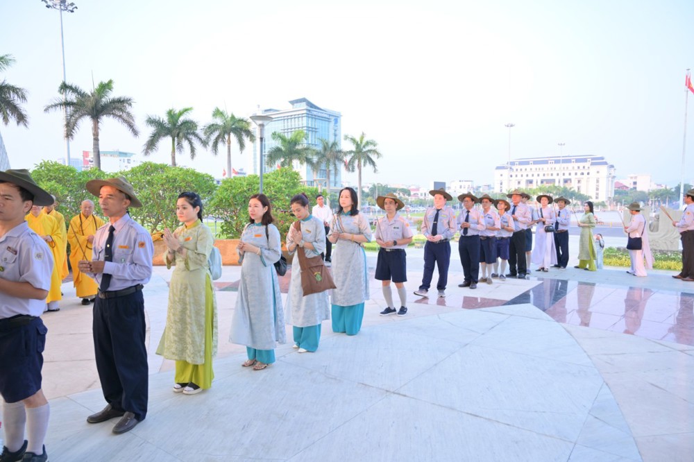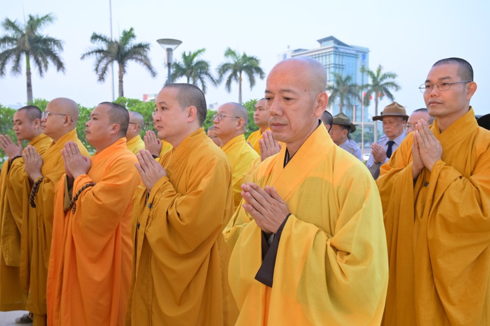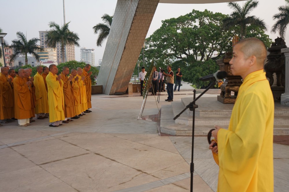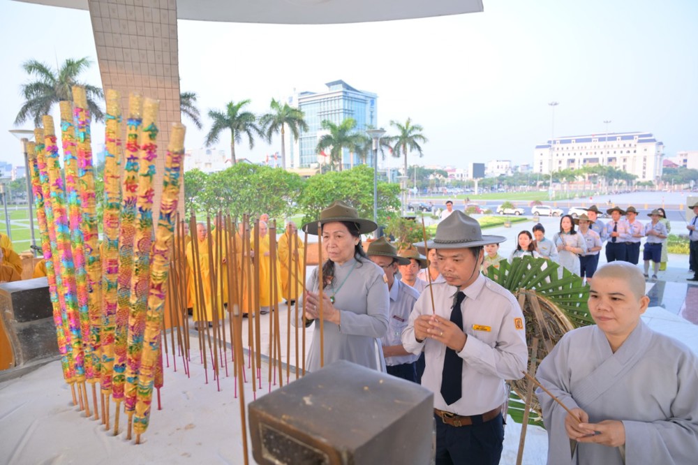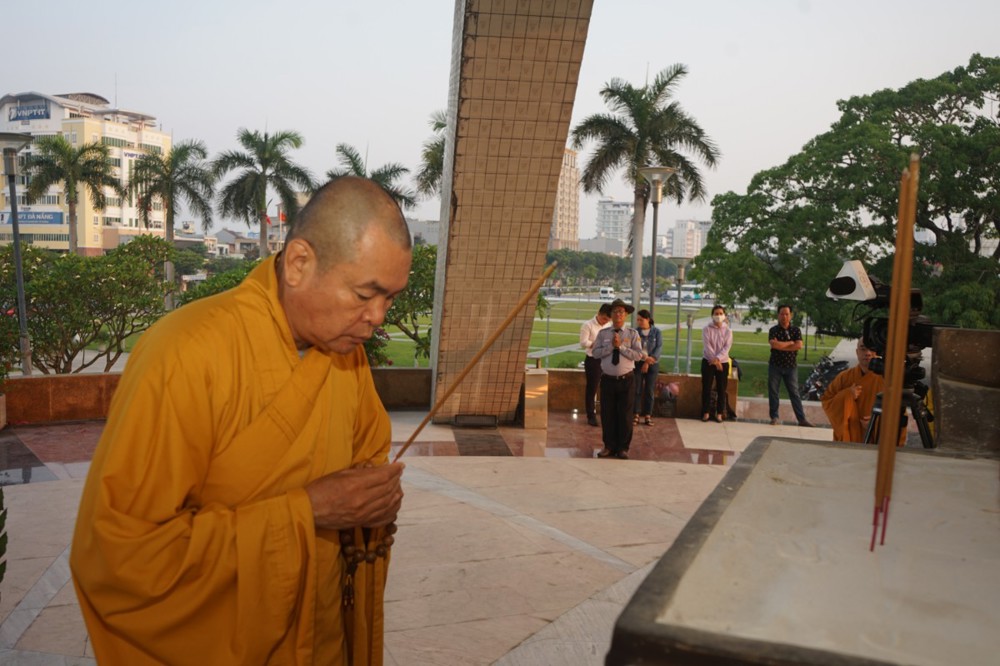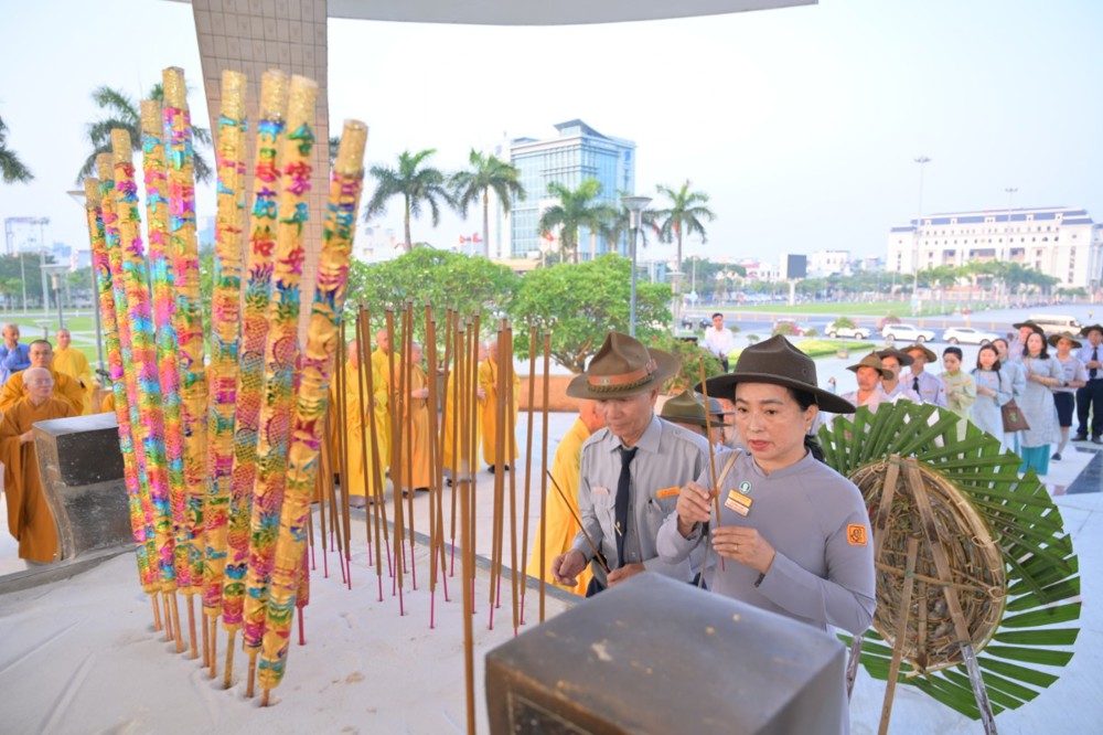 Trước đài tưởng niệm, chư tôn đức thực hiện nghi thức dâng hương, dành những giây phút tĩnh lặng để mặc niệm, tưởng nhớ và tri ân sâu sắc đến các bậc tiền nhân hữu công, những anh hùng, liệt sĩ đã hy sinh thân mình cho sự nghiệp giải phóng đất nước và hòa bình của dân tộc.