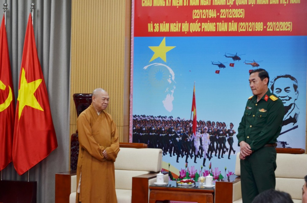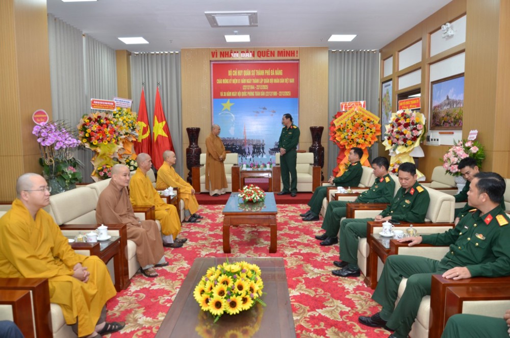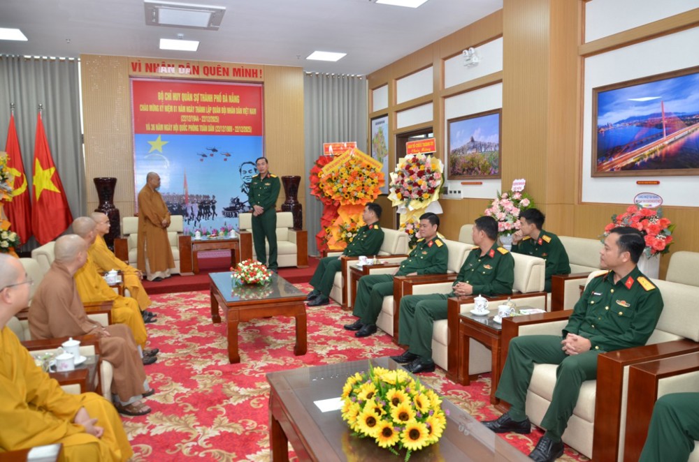 PSO - Nhân kỷ niệm 81 năm Ngày thành lập Quân đội Nhân dân Việt Nam (22/12/1944 - 22/12/2025) và 36 năm Ngày hội Quốc phòng toàn dân (22/12/1989 - 22/12/2025), chiều ngày 19/12/2025, Ban Trị sự GHPGVN Thành phố Đà Nẵng đã đến thăm và chúc mừng Bộ Chỉ huy Quân sự Thành phố.
