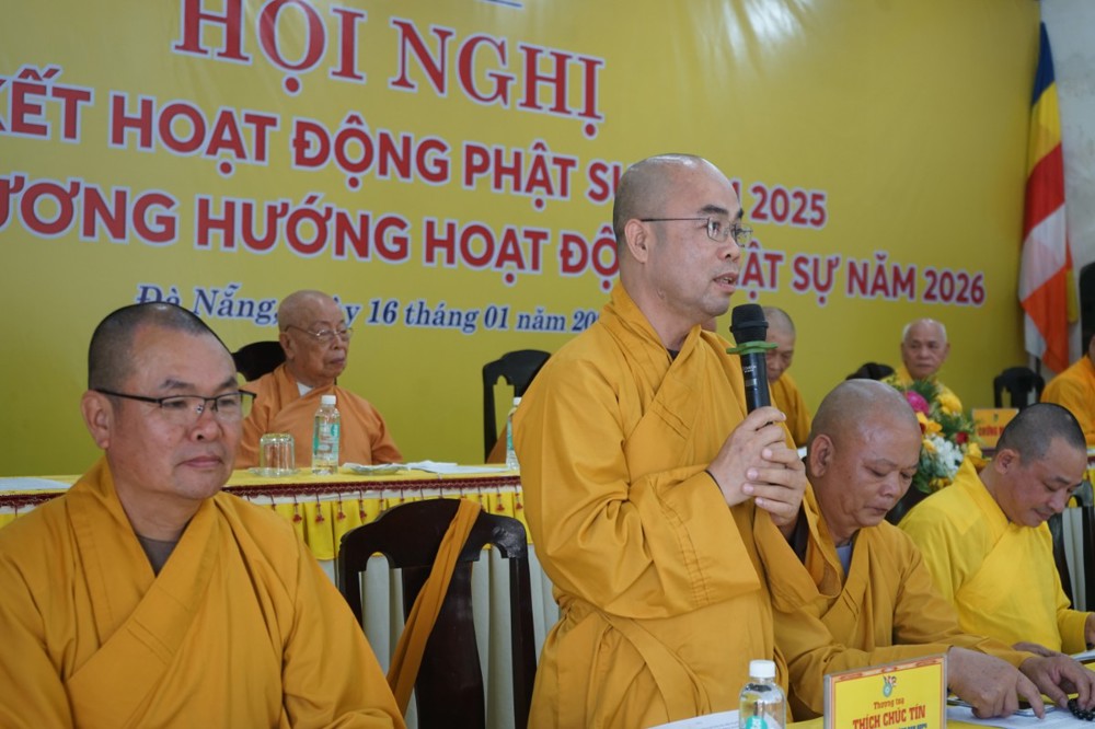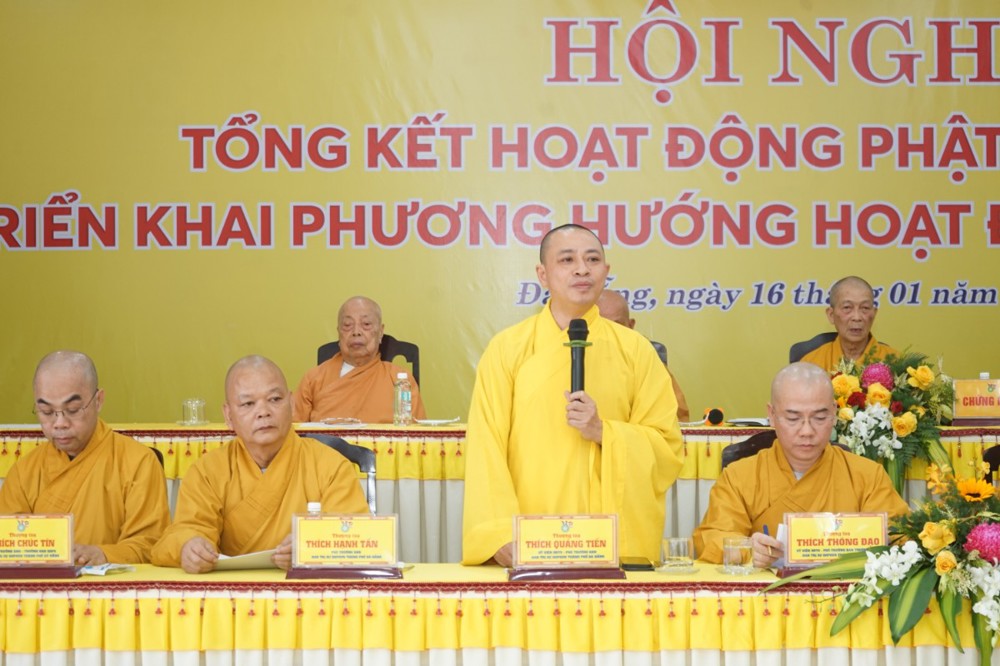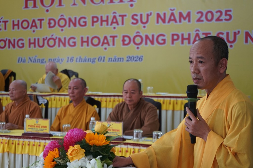Phát biểu khai mạc, Hòa thượng Thích từ Nghiêm cho biết: năm 2025 là một năm đáng ghi nhớ trong lịch sử dân tộc nói chung, thành phố Đà Nẵng nói riêng. Sự sáp nhập trong cả nước đánh dấu một sự thay đổi quan trọng. Qua đó, tỉnh Quảng Nam và thành phố Đà Nẵng đã được trở về bên nhau với tên gọi chung là thành phố Đà Nẵng. Việc sáp nhập không đơn thuần là một cuộc chuyển dịch hành chánh hay gộp lại những con số trên văn bản. Đây là sự “hội nhập cội nguồn”. Chúng ta thực hiện sáp nhập với tâm nguyện: “Hòa hợp là sức mạnh, đoàn kết là thành công”. Việc quay về một mối giúp chúng ta thống nhất trong chỉ đạo, đồng bộ trong triển khai và cộng hưởng trong các hoạt động Phật sự.