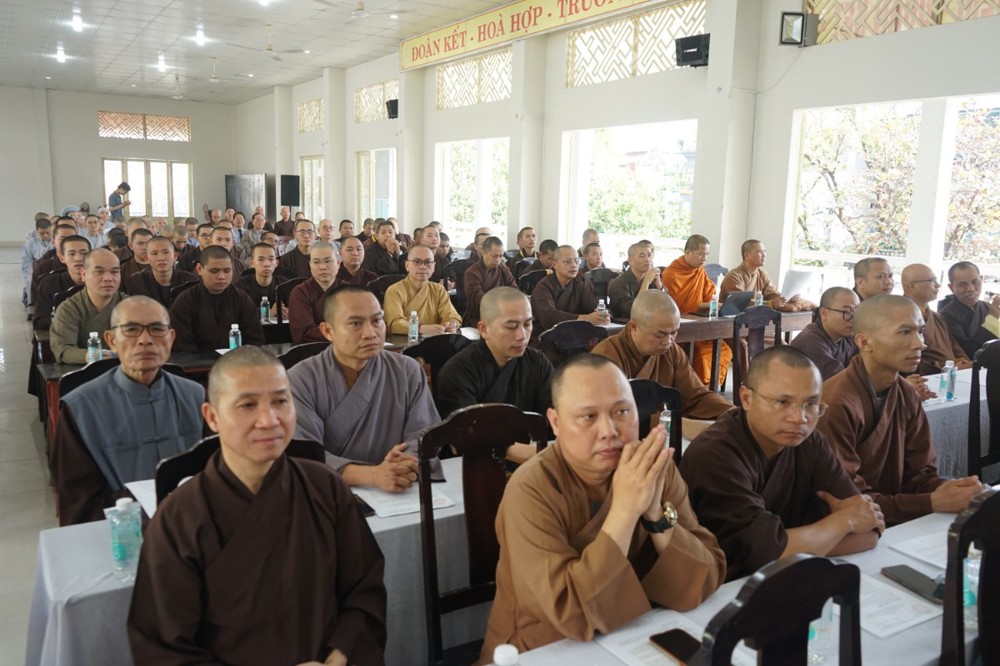 Chủ tọa hội nghị có Hòa thượng Thích Từ Nghiêm - Ủy viên Hội đồng Trị sự, Trưởng Ban Trị sự GHPGVN TP. Đà Nẵng; Hòa thượng Thích Phước Minh - Ủy viên Hội đồng Trị sự, Phó trưởng ban Thường trực Ban Trị sự GHPGVN thành phố; Thượng tọa Thích Thông Đạo - Ủy viên Hội đồng Trị sự, Phó trưởng ban Thường trực Ban Trị sự GHPGVN thành phố cùng chư Tôn đức Phó trưởng Ban Trị sự thành phố, chư Tôn đức Tăng Ni các ban ngành trực thuộc; Tăng Ni sinh Trường Trung cấp Phật học Đà Nẵng, cư sĩ, Phật tử.