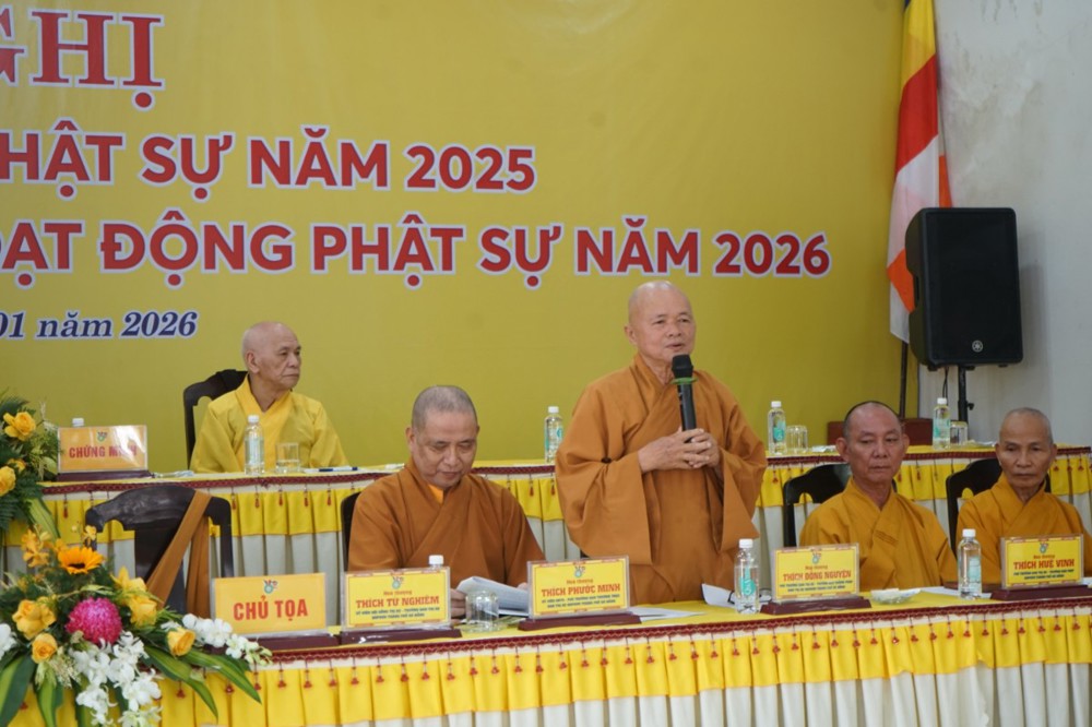 Thượng tọa Thích Viên Trừng - Phó trưởng Ban kiêm Chánh thư ký Ban Trị sự đã đọc bản nghị quyết gồm 8 điều được toàn thể hội nghị thống nhất thông qua, tin tưởng rằng các hoạt động Phật sự được đề ra cho năm 2026 sẽ được thành tựu viên mãn.