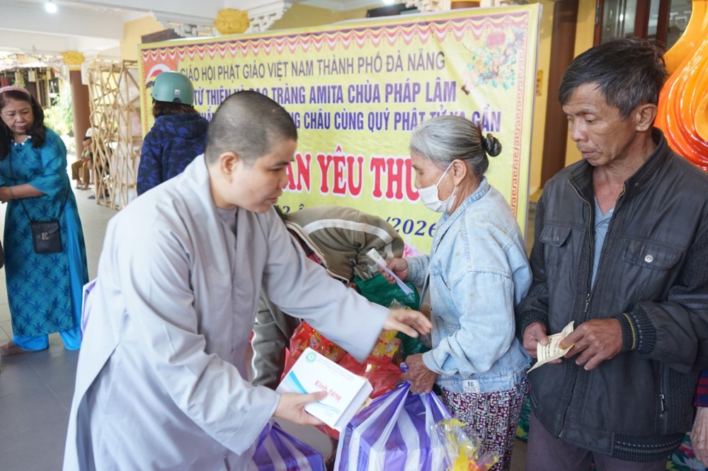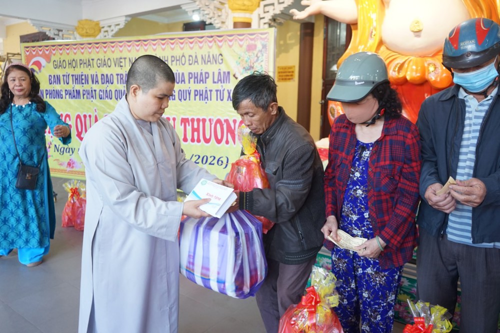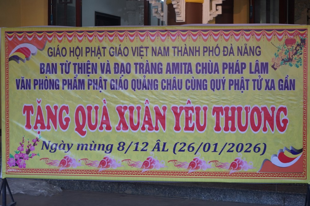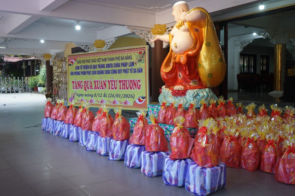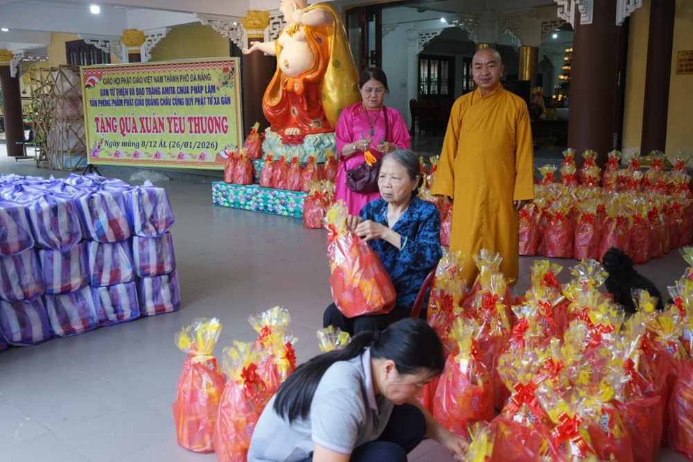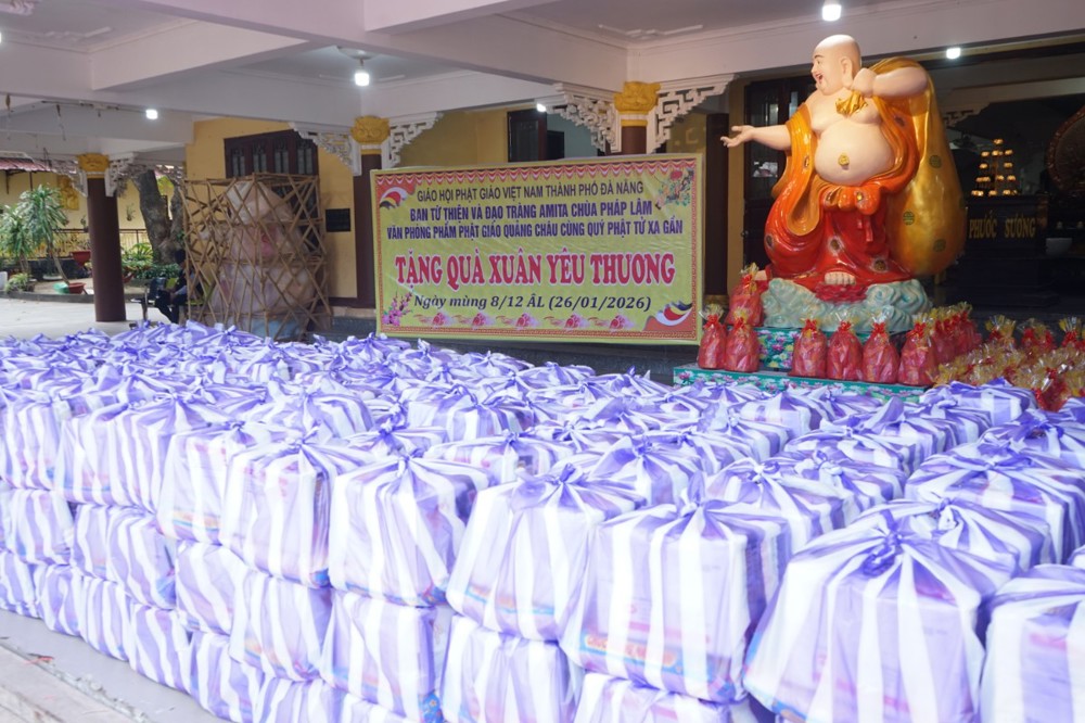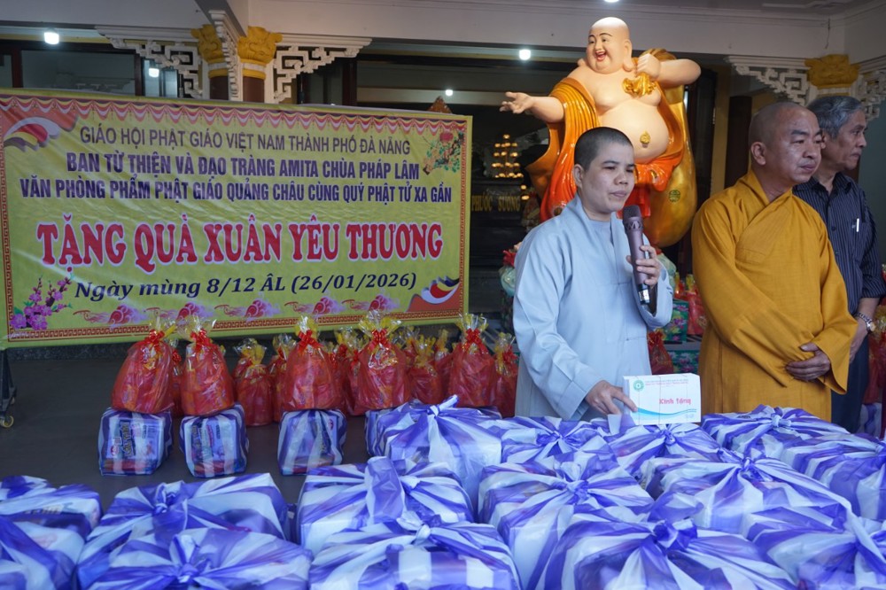 PSO – Chiều ngày 26 tháng 01 năm 2026 (nhằm ngày 08 tháng 12 năm Ất Tỵ), tại chùa Pháp Lâm – 574 Ông Ích Khiêm, phường Hải Châu, Tp Đà Nẵng; Trong không khí hân hoan đón mừng ngày Đại lễ Thành đạo của Đức Bổn sư Thích Ca Mâu Ni Phật, Ban từ thiện xã hội Phật giáo Tp Đà Nẵng cùng đạo tràng Amita chùa Pháp Lâm, phòng văn hóa phẩm Phật giáo Quảng Châu đã trao tặng 300 suất quà tết cho bà con có hoàn cảnh khó khăn tại địa phương.